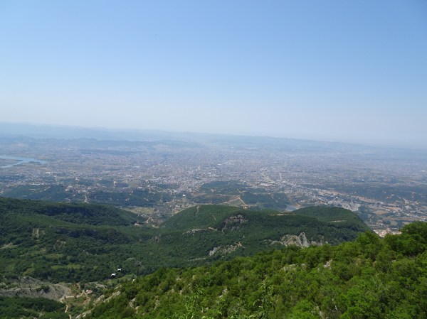 Deja nu mai suportam căldura și trebuia să plec de acolo. Ce pot fi o idee bună pe caniculă? Poate mersul la munte. Din fericire, Tirana este un oraș aflat la poalele munților. Din centru se poate ajunge la înălțime cu o cursă scurtă de autobuz și de acolo cu telecabina. Am schimbat câțiva euro în lek la un exchange pentru transport și am părăsit centrul cu primul autobuz spre Dajti. De acolo pleacă telecabina spre munte. Este una dintre cele mai mari din Europa, având o lungime de 5 kilometri. Am urcat în 15 minute sosind la peste 1000 de metri. Sus era deja altă viață. Temperatura mult mai plăcută, chiar adia puțin vântul. De pe munte se vede toată Tirana și până departe inclusiv Marea Adriatică. Am mers acolo la cină la Dajti Balkoni, unul din cele mai luxoase restaurante din Albania de unde se vede de la mese o panoramă splendidă.