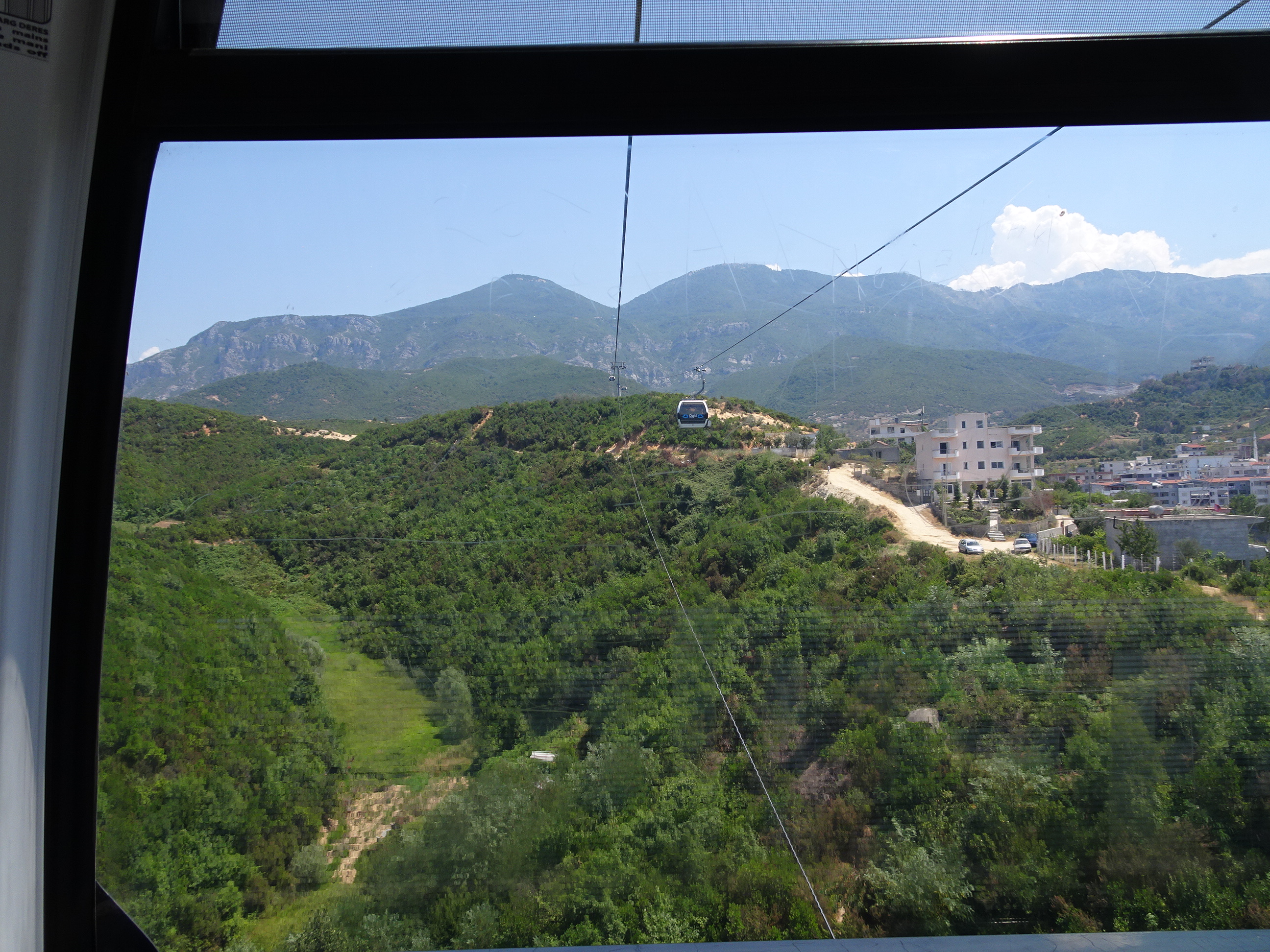 Deja nu mai suportam căldura și trebuia să plec de acolo. Ce pot fi o idee bună pe caniculă? Poate mersul la munte. Din fericire, Tirana este un oraș aflat la poalele munților. Din centru se poate ajunge la înălțime cu o cursă scurtă de autobuz și de acolo cu telecabina. Am schimbat câțiva euro în lek la un exchange pentru transport și am părăsit centrul cu primul autobuz spre Dajti. De acolo pleacă telecabina spre munte. Este una dintre cele mai mari din Europa, având o lungime de 5 kilometri. Am urcat în 15 minute sosind la peste 1000 de metri. Sus era deja altă viață. Temperatura mult mai plăcută, chiar adia puțin vântul. De pe munte se vede toată Tirana și până departe inclusiv Marea Adriatică. Am mers acolo la cină la Dajti Balkoni, unul din cele mai luxoase restaurante din Albania de unde se vede de la mese o panoramă splendidă.