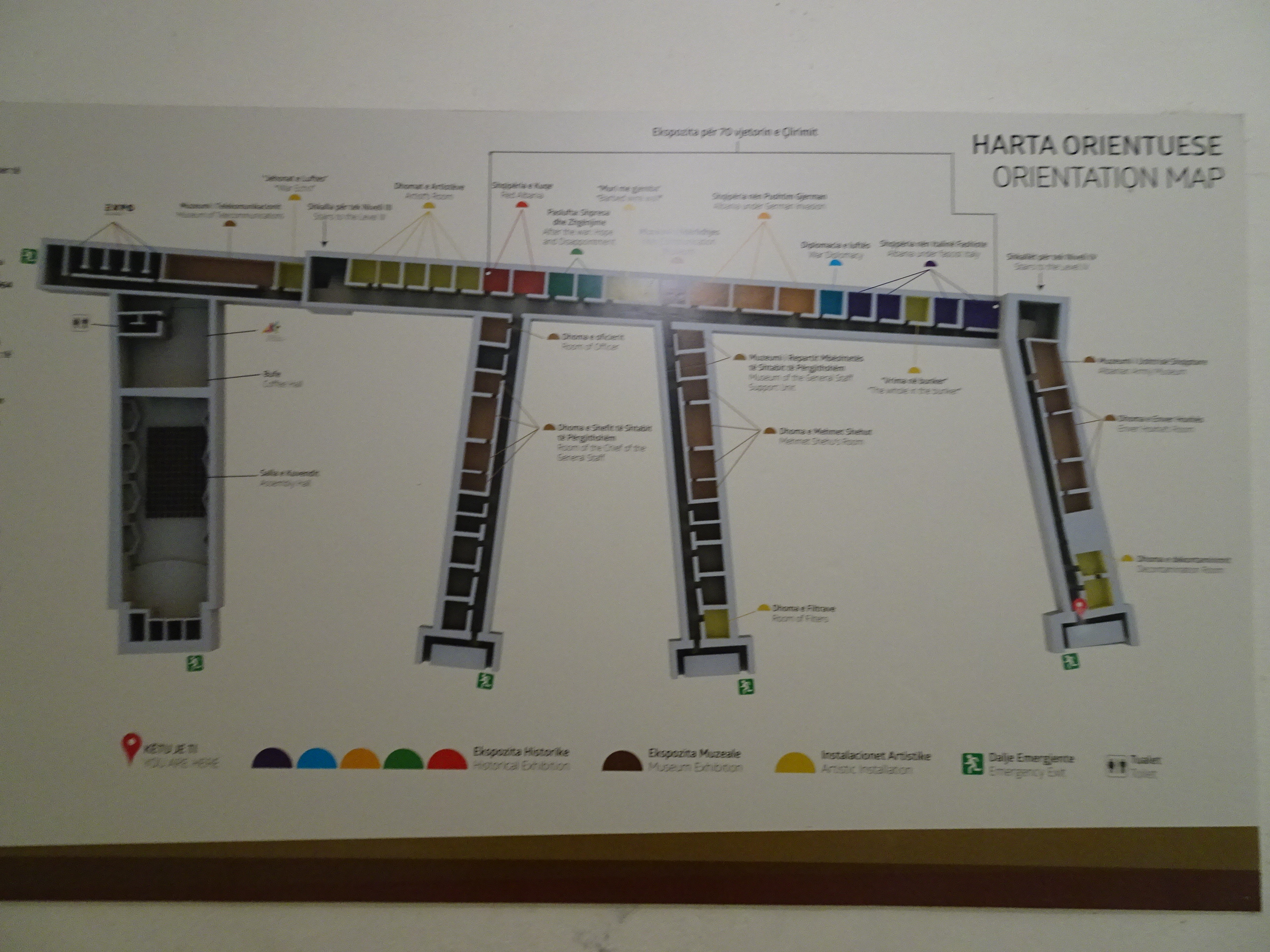 Mai târziu am coborât cu telecabina înapoi. Am mai vizitat un alt loc mai răcoros din apropiere. Este vorba de muzeul recent inaugurat Bunk’Art care în scurt timp a devenit una din cele mai importante atracții turistice ale Albaniei. Este un muzeu amenajat într-un buncăr nuclear construit special pentru dictatorul comunist.