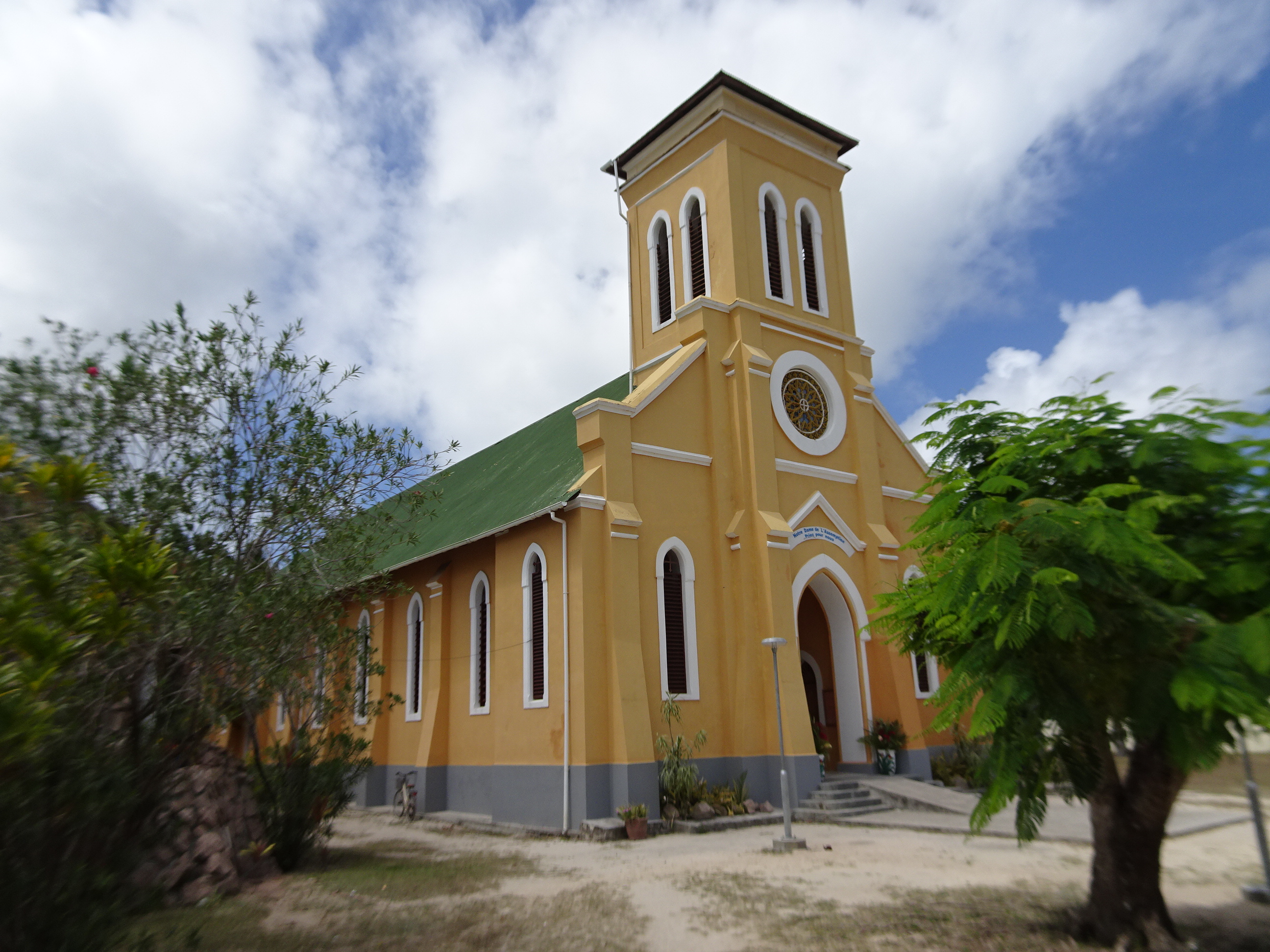 Pentru că nu aveam timp oricum să vizităm toată insula am preferat să mergem la pas. Din port am luat-o la dreapta spre sud cu direcția clară spre ferma L’Union unde se află renumita plajă Source d’Argent. Am făcut mai întâi o plimbare prin satul La Reunion. Acolo se află cele mai multe pensiuni și hoteluri de pe insulă. Am mai trecut apoi pe la supermarket și pe la un restaurant pentru o gustare si am observat că prețurile de pe La Digue sunt semnificativ mai mici comparativ cu Praslin. Era duminică și am văzut că localnicii se strângeau la slujbă la biserică. Am zis să ne alăturăm și noi. Am mers la biserica adventistă unde am asistam la slujbă. A fost o experiență foarte plăcută mai ales că pastorul a ținut slujba cu cântece la chitară iar noi am dansat și am cantat împreună cu localnicii.