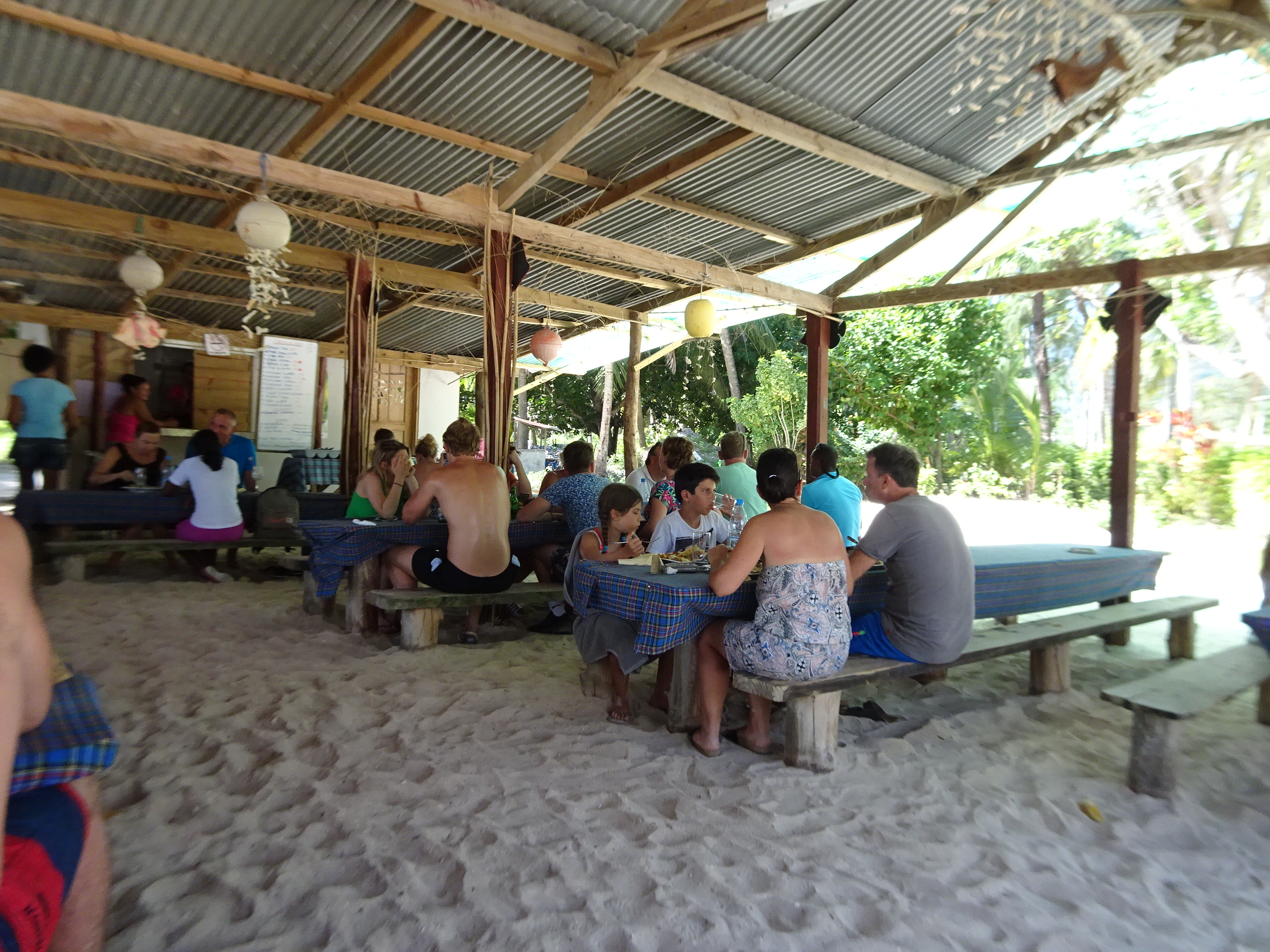 La ora prânzului am mers la restaurantul Lambousine din apropiere unde am gustat din bucătăria creolă. Am luat cate un fresh de banane, un curry de pește iar la desert mini-banane caramelizate. După masă am făcut siesta într-un din hamacurile de pe plajă. Rezervasem inițial feribotul de întoarcere la 3, dar nu ne venea deloc să plecăm. Am zis să mai stăm câteva ore pe plajă și apoi să încercăm să prindem ultimul vapor al zilei spre Praslin. În cel mai rău caz rămâneam pe La Digue o noapte. Ne-am bucurat așadar de plaja minunată până spre seară stand la umbra palmierilor. Ar mai fi fost o plajă frumoasă unde puteam merge – Anse Cocos aflată în partea de est (unde se poate intra în mare mai ușor) dar era totuși prea frumos să plecăm.