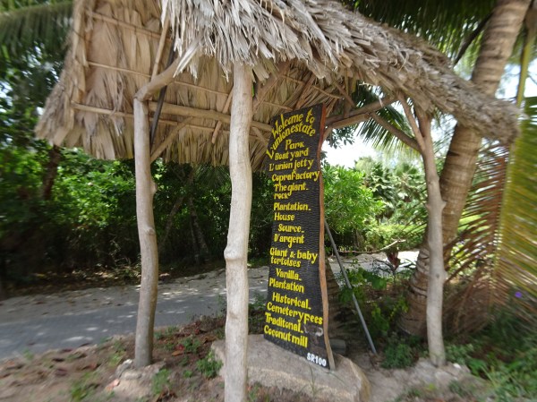 După vreo jumătate de oră de plimbare am ajuns la L’Union Estate. Acolo se plătește intrare (vreo 6 euro) pentru a vizita ferma și a ajunge la plajă. L’Union Estate este o fostă plantație transformată astăzi în muzeu pentru turiști. Sunt multe lucruri interesante de văzut acolo. Am trecut pe la bar de unde am luat o nucă de cocos de băut proaspăt culeasă din copac, iar apoi am admirat plantațiile de cocotieri galbeni și de vanilie. Există câteva mici ateliere unde se poate observa cum se fabrică diverse uleiuri și parfumuri și de unde se pot și cumpăra pentru acasă. Se mai poate vizita fosta vilă de pe plantație iar în centrul fermei am putut vedea și hrăni câteva zeci de broaște țestoase uriașe.