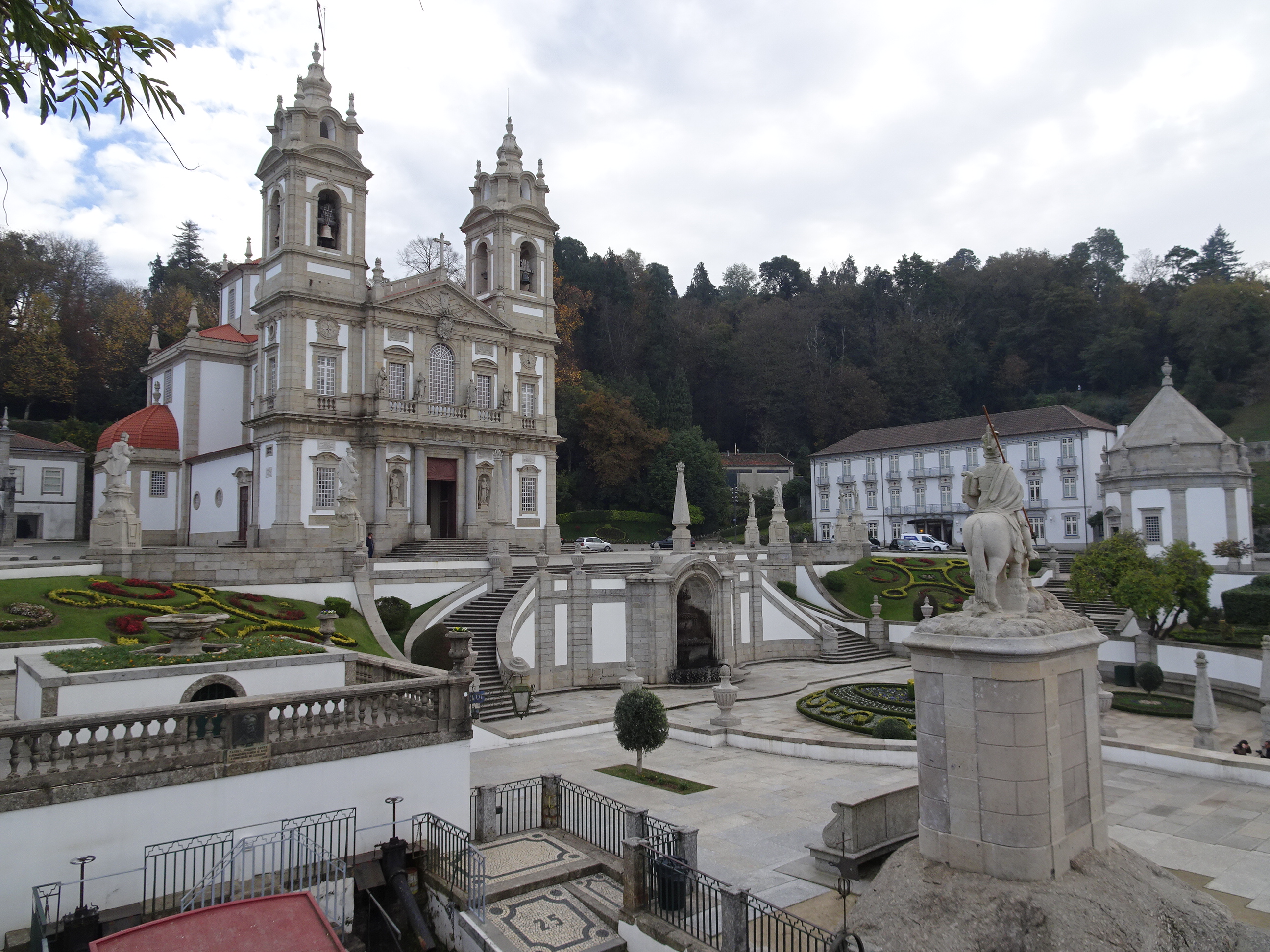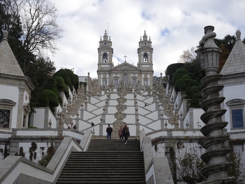 Nu am oprit în orașul Braga ci am mers pe dealurile din apropiere la una dintre cele mai renumite biserici ale Portugaliei, Bom Jesus do Monte. Mănăstirea „din vârf de munte” se află într-un cadru natural foarte pitoresc deasupra orașului Braga. Un vechi funicular face legătura cu baza dealului.