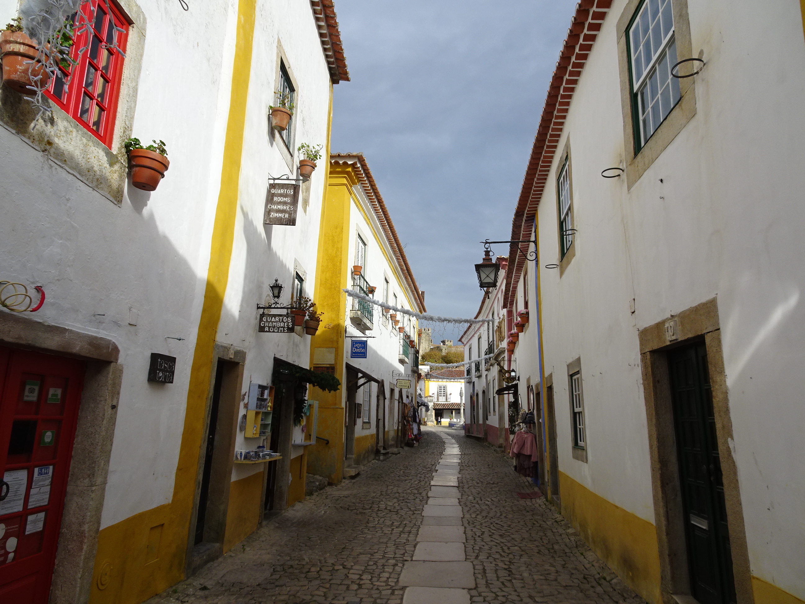 Casele vechi din Obidos sunt de o frumusețe rară – toate vopsite alb cu dungi galbene sau albastre. Majoritatea au fost transformate în mici afaceri locale: magazine de suveniruri, mici meșteșugării sau restaurante.
