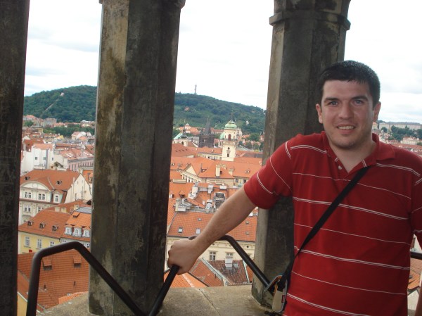 Am început turul din piața centrală (Starometske Namesti) unde se află poate cel mai cunoscut simbol al orașului – ceasul astronomic. Este un ceas unic în lume, vechi de peste 6 secole. La ore fixe cântă și apar diverse statuete care fac un scurt dans. Mulțimile se strâng de fiecare dată pe la fără 10 pentru a urmări mini-spectacolul. Turnul cu ceas poate fi vizitat. După ce a trecut ora fixă, am urcat sus în vârf pentru a vedea una din cele mai bune panorame peste Praga.