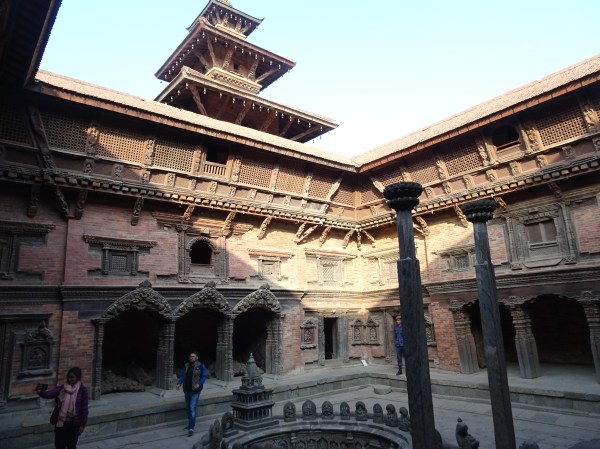 Pentru a intra în zona turistică din nou am plătit aceeași taxă obligatorie pentru străini (10 dolari). Templele din Patan le-am găsit într-o stare ceva mai proastă. Multe sunt încă la pământ și mai este de muncă pentru a le aduce în starea în care erau înainte de cutremur. Cea mai deosebită clădire este palatul regal, care se vizitează și în interior. Curțile acestuia sunt de o frumusețe rară. Clădirea vecină adăpostește muzeul Patan, un loc unde se pot afla mai multe despre istoria țării. Dincolo de Durbar, mai merită văzut Templul de Aur, un mic dar foarte frumos decorat templu budist, la câteva sute de metri de piață. Templele vechi din Nepal de care am povestit până aici sunt toate hinduse, acesta fiind primul loc budist pe care l-am vizitat. De altfel Nepal este o țară majoritar hindusă (aproximativ 70% din populație) iar budismul este a doua religie ca importanță – cumva paradoxal ținând cont că în Nepal se află Lumbini, locul unde se spune că s-a născut însuși Buddha.
