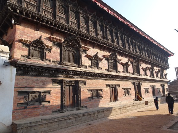 Am mers mai întâi în marea Durbar Square unde se află palatul regal, muzeul de istorie și mai multe temple. Multe dintre construcțiile vechi din cărămidă sunt încă în reconstrucție iar altele se sprijină în piloni de lemn ca să nu cadă. Se păstrează totuși bine frumusețea fațadelor și sculpturilor în lemn. Cele mai frumoase clădiri sunt templul Taleju cu a sa poartă aurită, templul Dattatreya ornat cu sculpturi cu teme sexuale din Kamasutra și palatul cu 55 de ferestre unde cândva locuiau regii nepalezi.