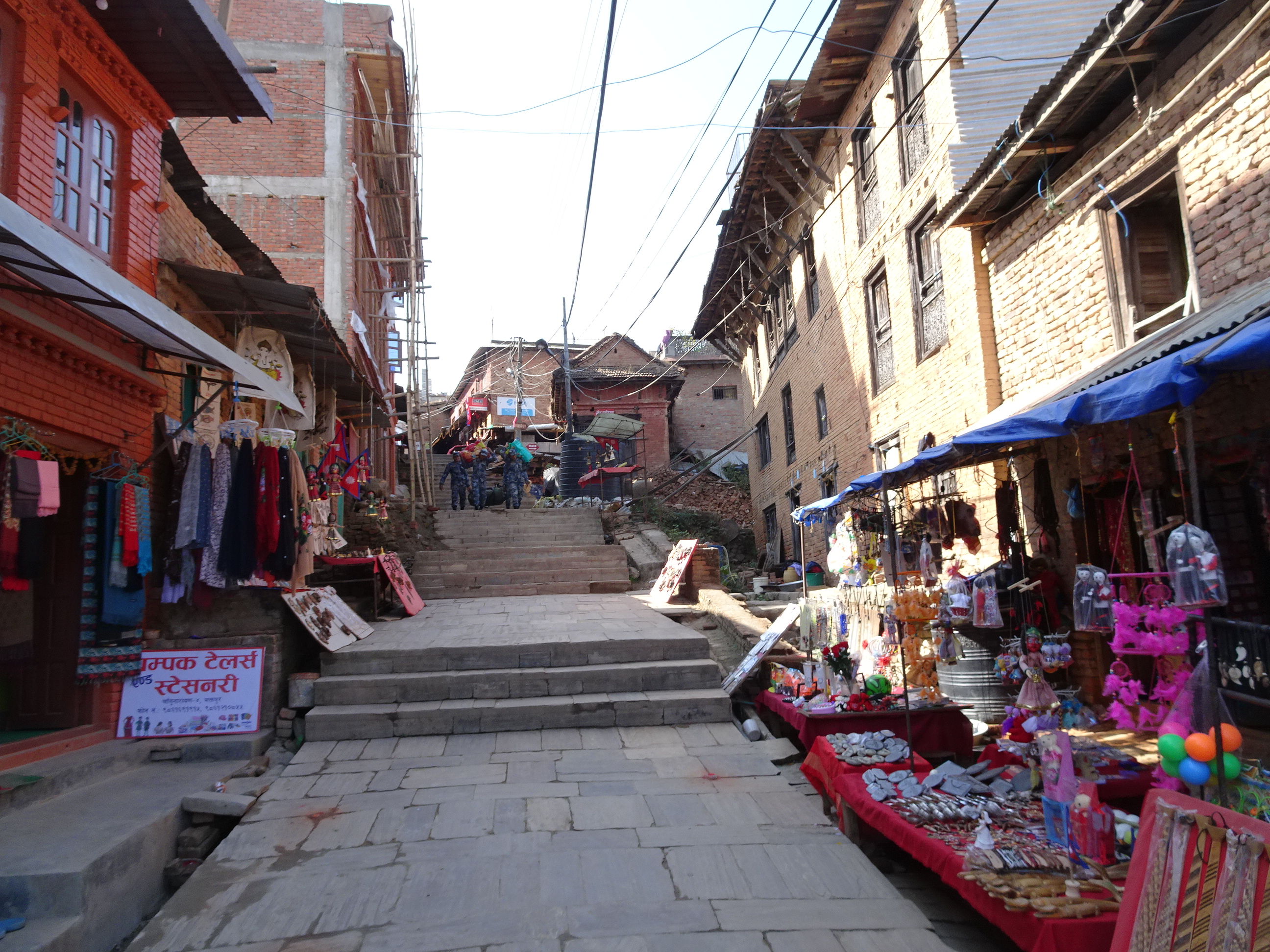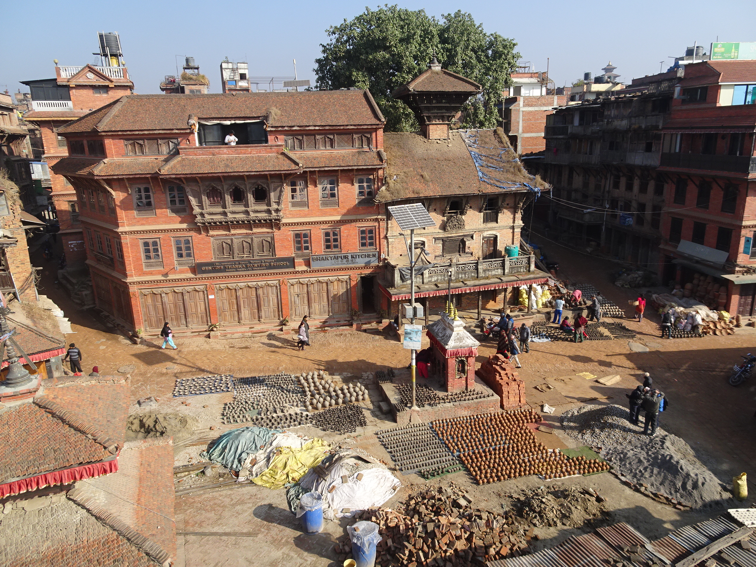 Am mai vizitat prin Bhaktapur și alte două piețe: Pottery Square – unde zilnic vânzătorii de ceramică își expun vasele la vânzare; acolo am și urcat la o terasă pe un acoperiș pentru a admira vederea de la înălțime la o cafea; și Taumadhi Square unde se află principalele locuri de pelerinaj hindus pentru localnici: templul Bairavnath și pagoda Nyatapola. La Taumadhi am întâlnit preoți și comercianți locali dar și vaci libere la plimbare prin oraș. Am mai hoinărit pe străzile cu case vechi iar mai apoi am revenit la mașină.