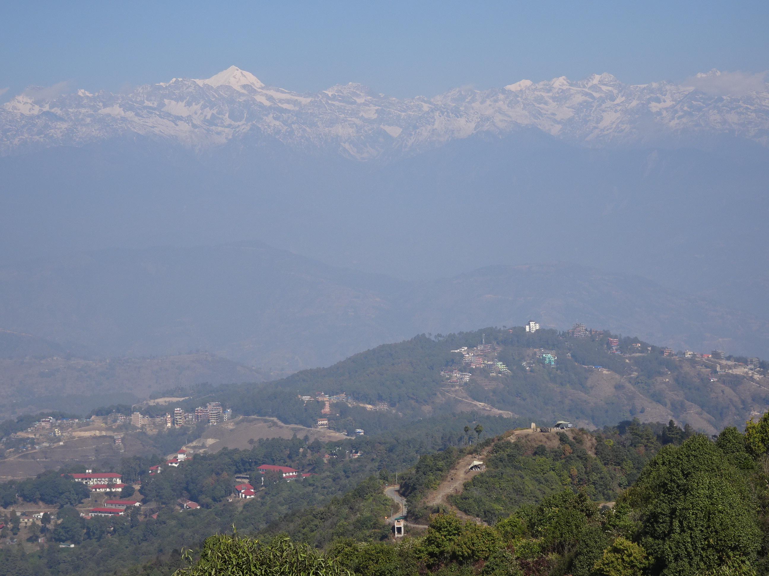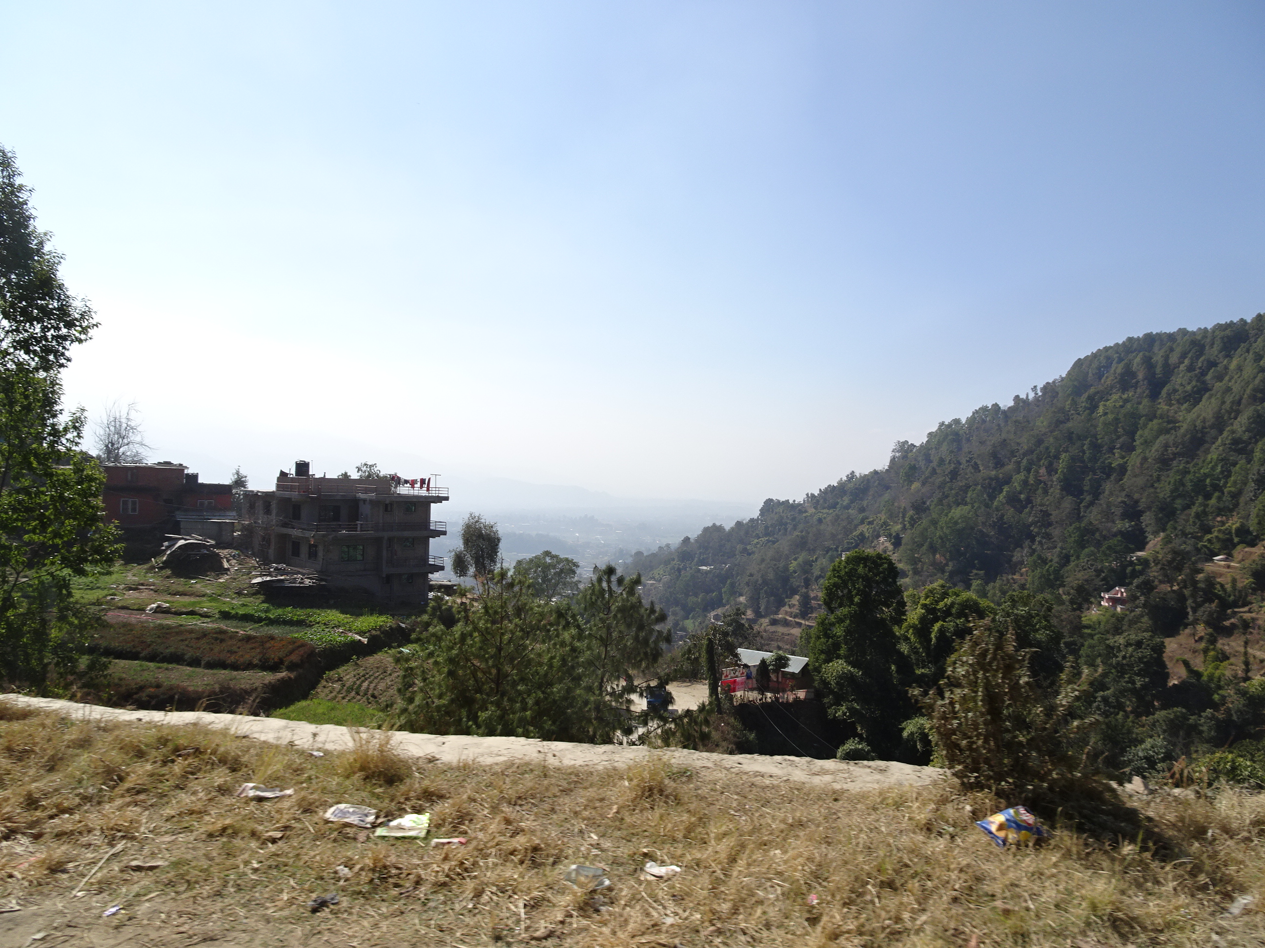 După ce am părăsit Bhaktapur am mers mai departe spre este în direcția Nagarkot. Acesta este un deal mai înalt unde se află un turn de observație de unde se văd bine vârfurile din Himalaya. Teoretic vârfurile de peste 8000 de metri s-ar vedea de oriunde din Valea Kathmandu dar din cauza prafului și a poluării dense nu sunt niciodată vizibile. Se spune că acum douăzeci de ani, Everestul se vede de la orice balcon din Kathmandu. Astăzi este însă nevoie să urci deasupra smogului la cel puțin 1500 de metri pentru a îl vedea.