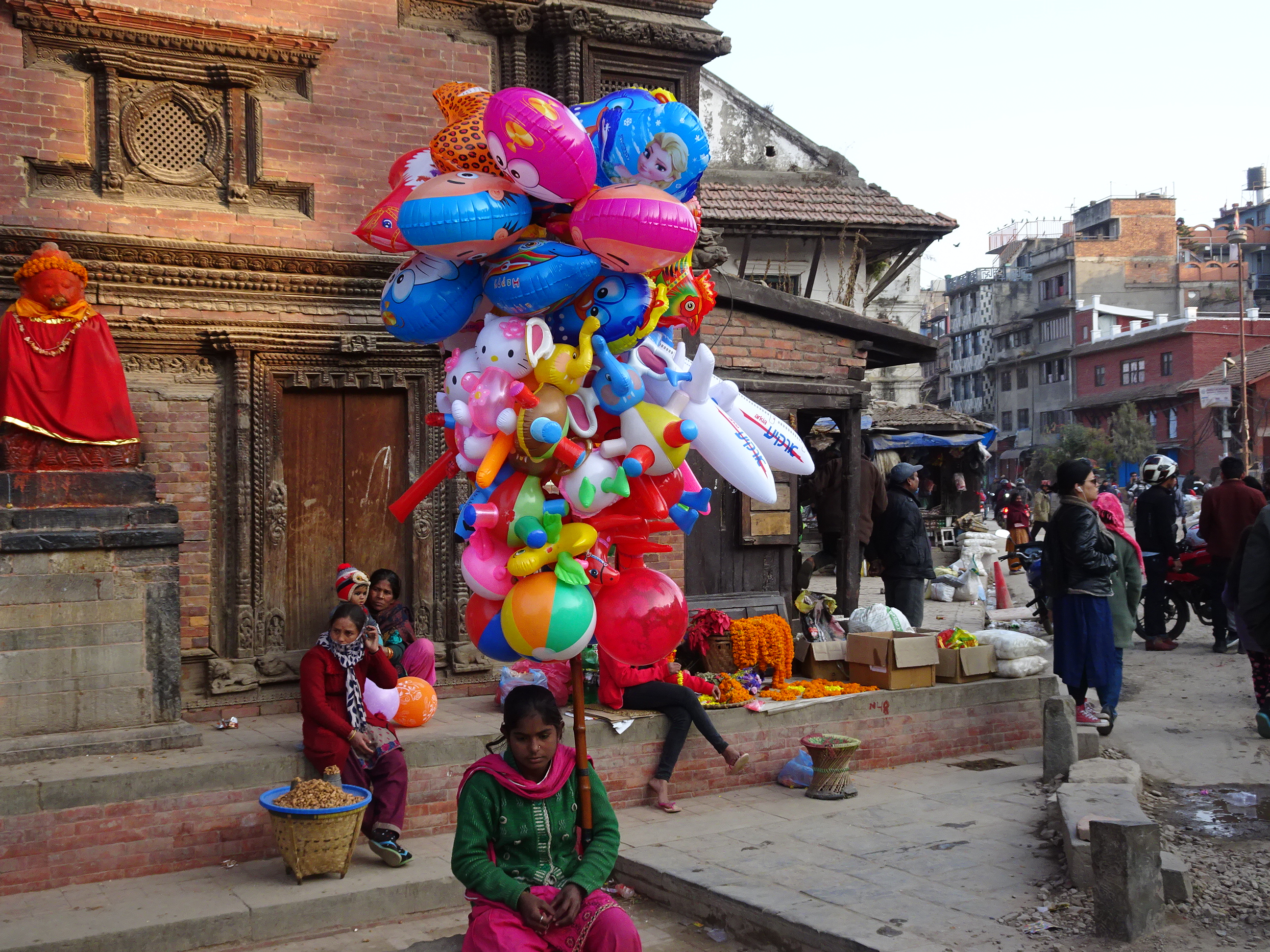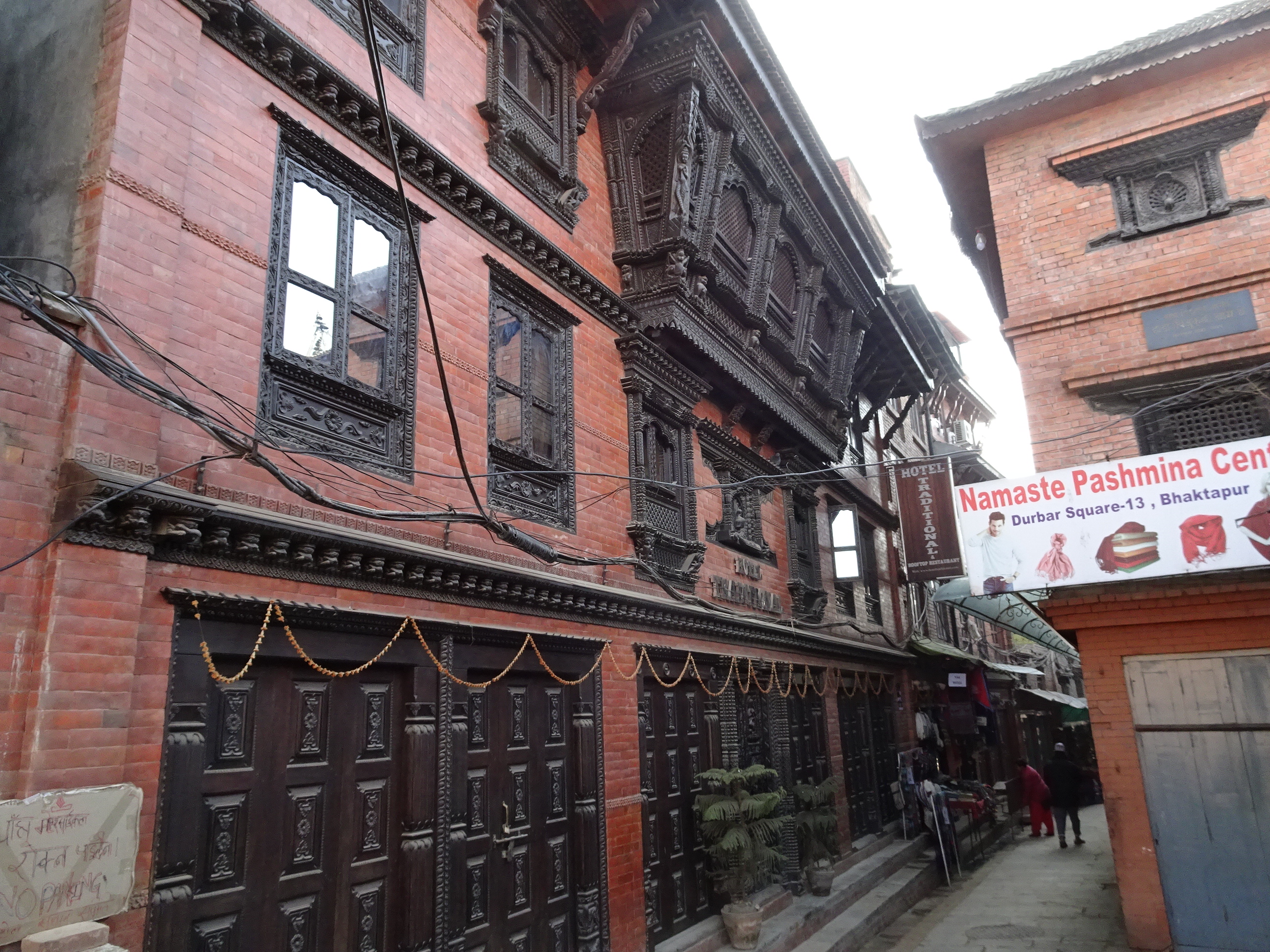 Primul loc unde am mers a fost Bhaktapur aflat la 20 de kilometri est de capitală. Drumul cu mașina a durat aproape o oră prin traficul haotic din zonă, dar din fericire am avut un șofer bun vorbitor de engleză cu care am putut avea o conversație plăcută. Am parcat mașina aproape de centrul vechi din Bhaktapur de unde am luat-o la pas. Pentru a intra în zona turistică ca străin a trebuit să plătesc o taxă de 15 dolari. Era ianuarie (adică cea mai rece lună a anului în Nepal) dar temperaturile erau ideale pentru plimbare cu maxime în jur de 20-24 de grade și mult soare.