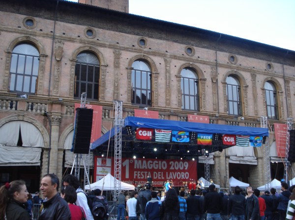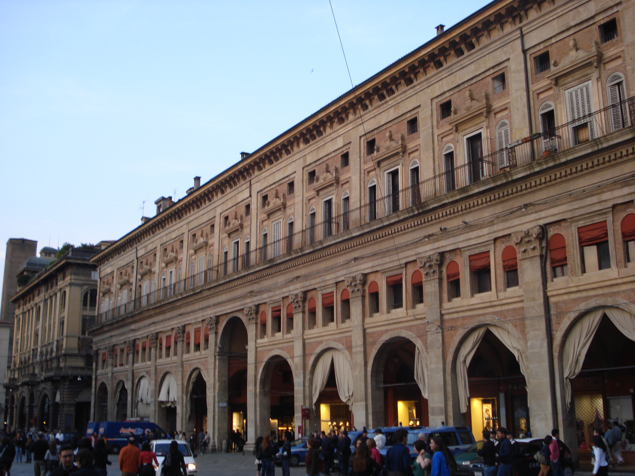 Bologna are un centru vechi frumos cu multe clădiri și piețe interesante. Inima orașului este Piazza Maggiore, unde se află catedrala San Pietronio, primăria, Pallazzo dei Banchi și Palazzo Podesta. Toate clădirile din piață se remarcă prin fațadele cu cărămidă, roșiaticul acesteia fiind culoarea dominantă în tot centrul orașului. Am găsit piața într-o zi de sărbătoare – era 1 mai iar primăria organiza mai multe spectacole și concursuri de ziua muncii. Terasele și restaurantele erau pline – cu turiști dar și cu localnici.