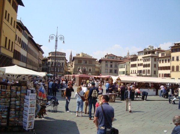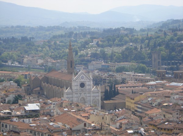 După prânz am mers să vizităm Santa Croce – o biserică poate nu la fel de frumoasă ca Duomo dar cu o mai mare importanță istorică. Cele 16 capele ale sale sunt decorate cu picturi ale marilor artiști florentini în frunte cu Giotto, Donatello sau Vasari iar în criptele bisericii se află mormintele marilor artiști și oameni de știință ai locului precum Michelangelo, Raffaelo sau Galileo Galilei și monumente funerare dedicate altora precum Dante sau Leonardo da Vinci. Santa Croce amintește cel mai bine de rolul uriaș al Florenței în perioada renașterii.