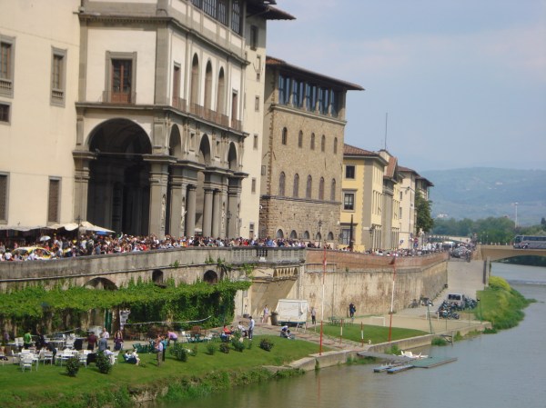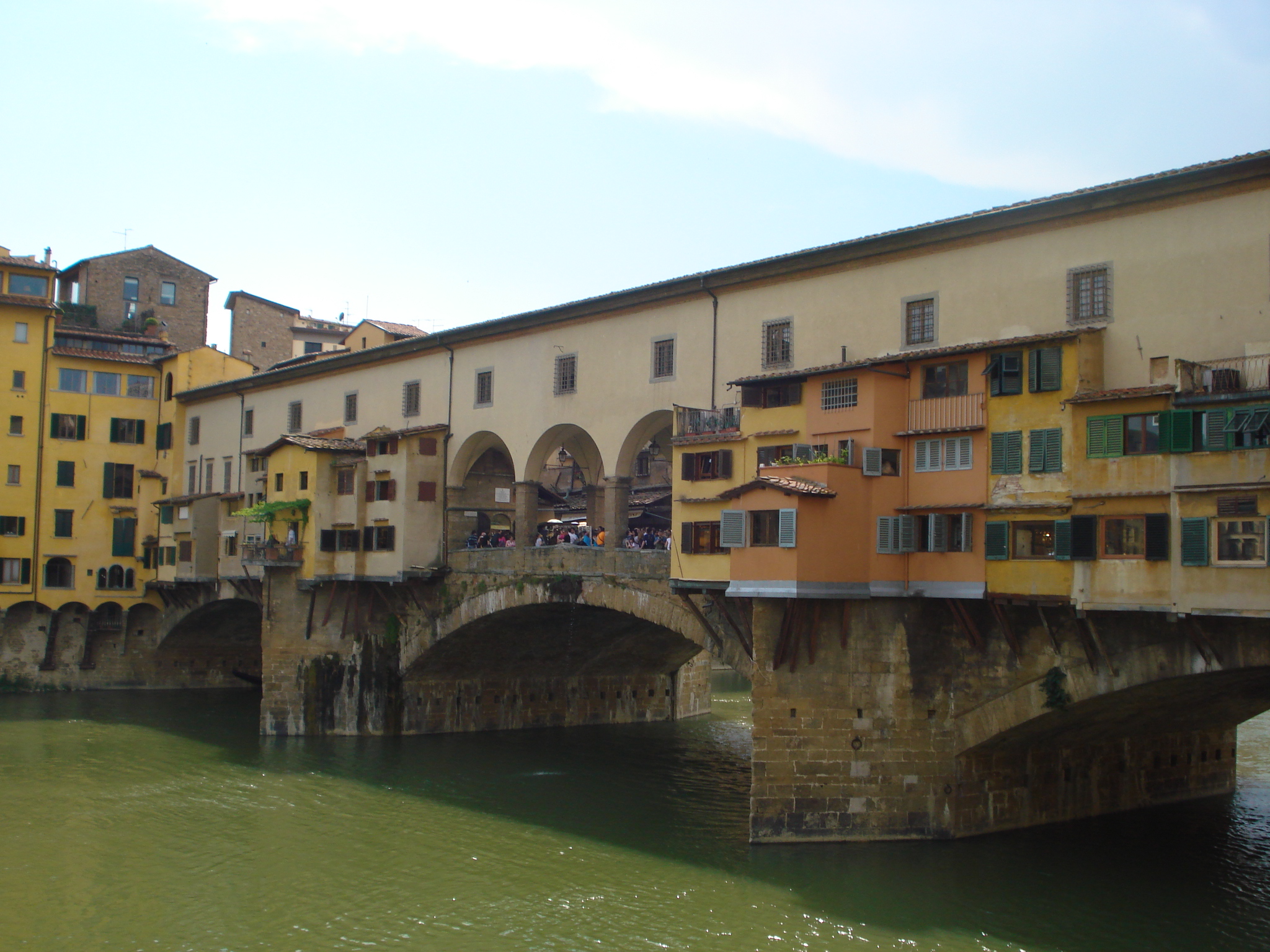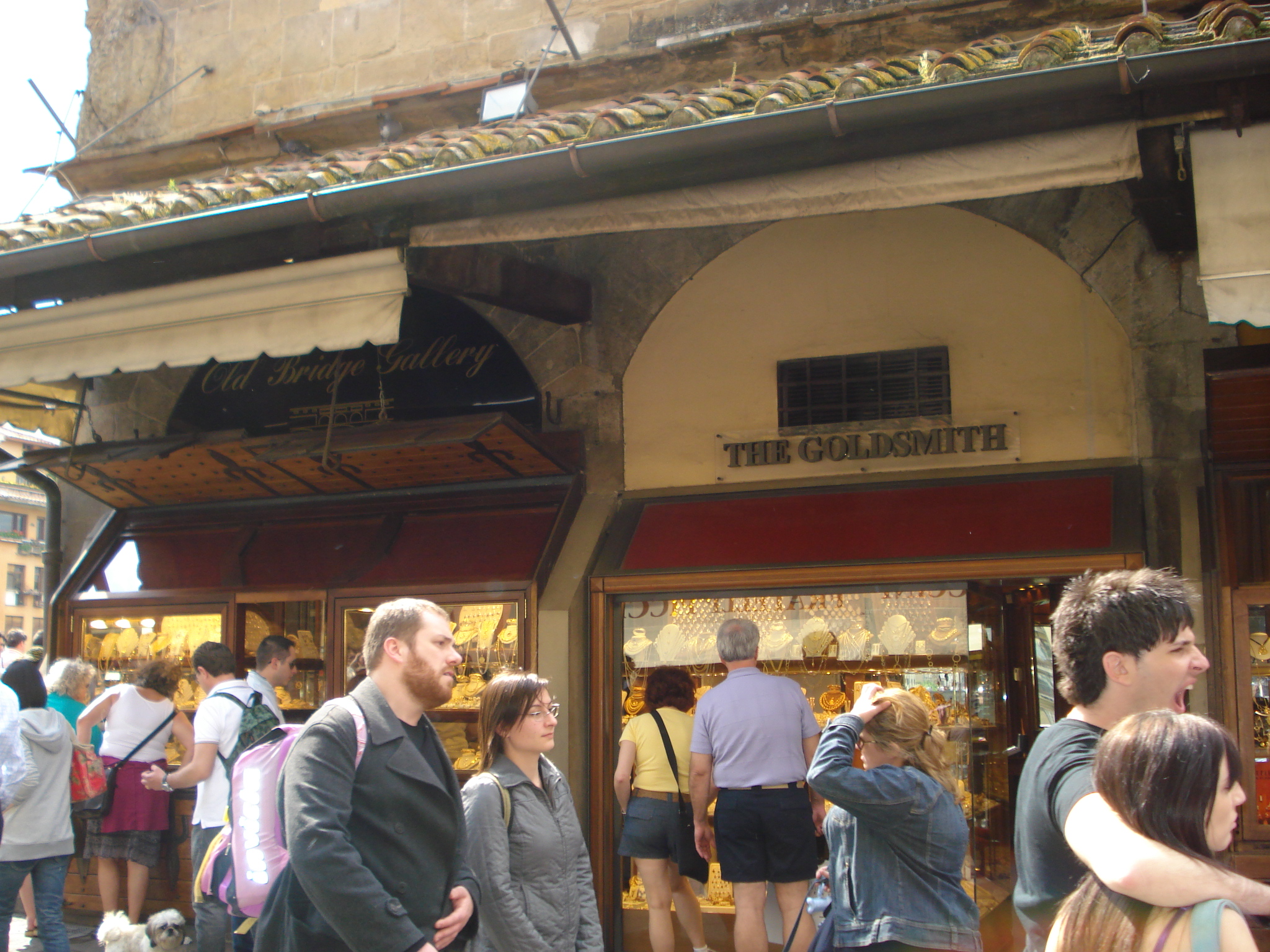 Plimbarea a continuat pe malul râului Arno, cel care împarte orașul în două, pe Ponte Vecchio. Acest pod este unul din cele mai neobișnuite și frumoase ale lumii. Pe el se află tunelul care lega Palatul Uffizi de Palatul Pitti pe unde treceau conducătorii departe de ochii oamenilor de rand. La primul nivel este zona unde se află bijutierii, vânzătorii de aur cu o tradiție