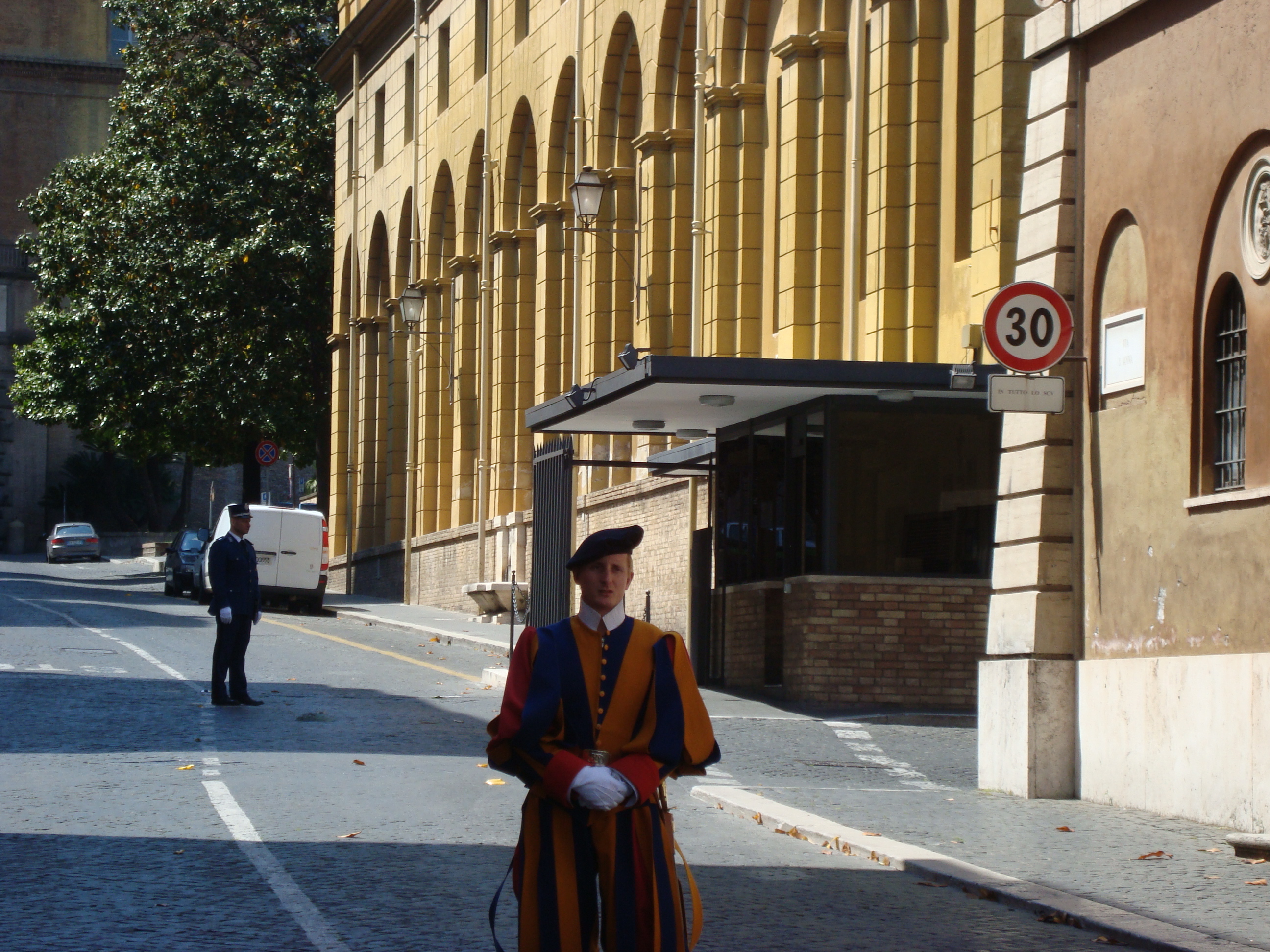 Am luat un day pass valabil pe toate mijloacele de transport în comun din Roma (metrou și autobuz), fiind varianta cea mai convenabilă de transport prin oraș. Turul nostru a început de la Vatican, primul loc pe care îl vizitasem cu doi ani în urmă. Am trecut pe lângă zidurile de la Musei Vaticani, pe la porțile păzite de garda elvețiană iar apoi ne-am pus la coada la intrare în catedrala San Pietro.