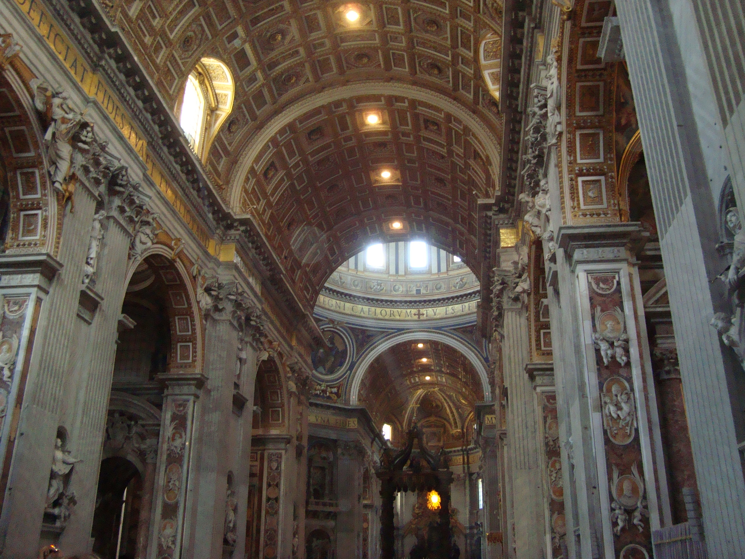 Întotdeauna este coadă la bilete acolo și timpul de așteptare este de minim jumătate de oră. Se poate vizita catedrala, criptele și se poate urca în turn. Interiorul de la San Pietro este impresionant. Cea mai mare catedrală a lumii uluiește prin dimensiunile gigantice și prin capodoperele de artă expuse. Locul nostru preferat este turnul catedralei. Pentru a ajunge acolo se urcă vreo 500 de scări, jumătate din drum putând fi făcut cu liftul. Vederea de sus este probabil cea mai frumoasă din Roma, peste piața San Pietro și peste întregul centru istoric al orașului de pe 7 coline. După efortul de pe scări ni s-a făcut foame. Numai bine, nu departe de piață se află o terasă unde se poate mânca o pizza excelentă cu vedere la Vatican.