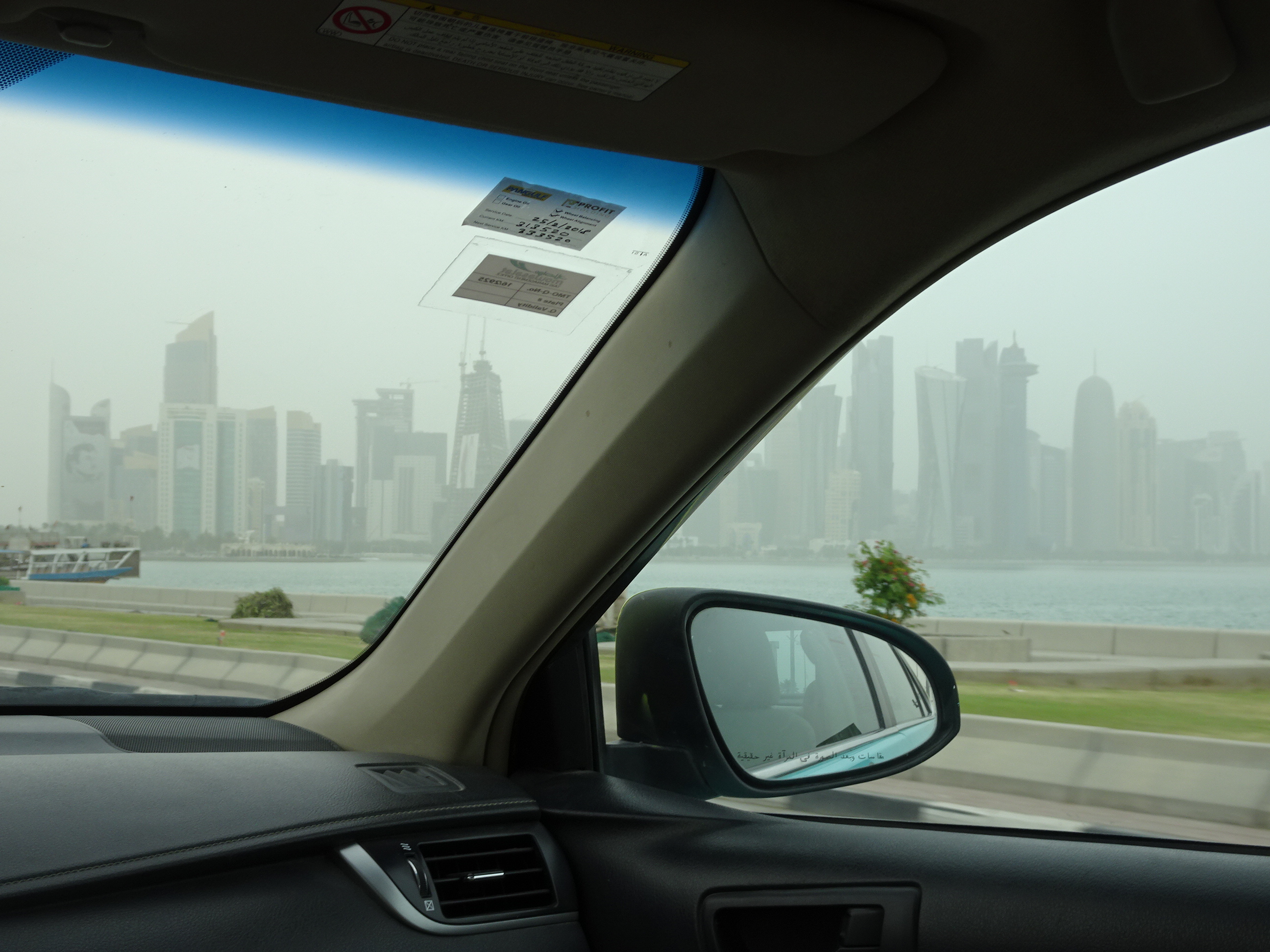 Am sosit la Doha tot dimineața devreme după un zbor peste noapte din Tokyo. După ce am fost de peste 20 de ori pe aeroport doar pentru tranzit a fost prima dată când am ieșit afară. Controlul pașapoartelor a fost lejer și câteva minute mai târziu eram sosiți în Qatar. Dincolo de agitația tranzitului din HIA am găsit la sosiri un loc foarte liniștit, aproape pustiu. Aeroportul este unul de tranzit și minim 90% dintre pasageri nu vin sau pleacă din Qatar. Am schimbat niște bani în riali locali și apoi am luat un taxi spre hotel.