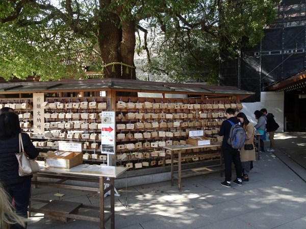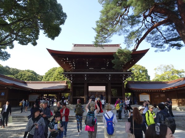 La parcul Meiji se poate ajunge din Shinjuku mergând pe jos. Parcul este o adevărată oază verde în mijlocul orașului preferat de cei mai mulți localnici pentru plimbări. În mijlocul parcului se află Meiji Jingu templul Shinto dedicat împăratului Meiji. Acolo am avut un prim contact cu tradițiile japoneze de la templu. Mai întâi am trecut pe la bilețele cu noroc. Fiecare vizitator poate cumpăra un bilețel pentru a-și afla norocul. Se extrage mai întâi un număr dintr-un tub de bambus, iar apoi se primește bilețelul cu același număr (sunt disponibile și în limba engleză). Dacă biletul este cu ghinion el trebuie legat de o sârmă în vânt. Probabil v-ați dat deja seama că japonezii sunt foarte superstițioși, iar la temple se vede asta cel mai bine. Am mers și la rugăciune la templul propriu-zis unde oricine este bine-venit. Tot la Meiji, am putut urmări o ceremonie pentru cununia a doi tineri. Procesiunea este foarte elegantă iar alaiul defilează într-o ordine foarte strictă, începând cu preoții, mirii, părintii și apoi invitații în ordinea vârstei.