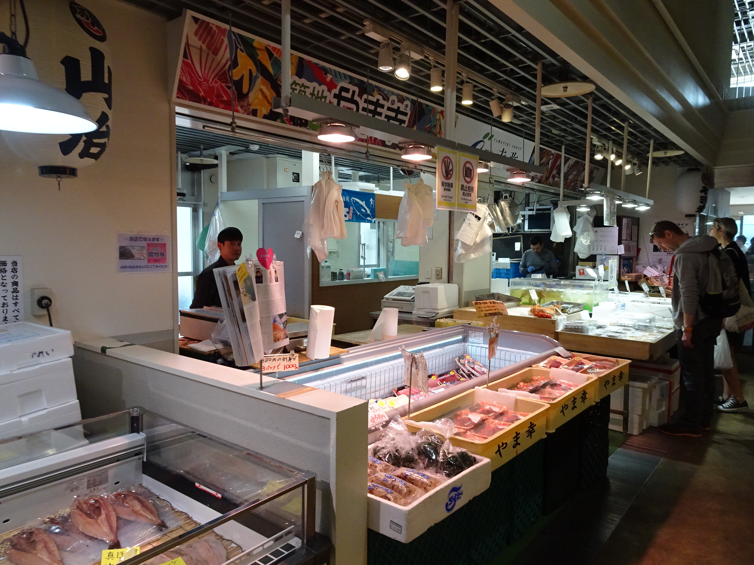 Astea au fost locurile vizitate în prima zi la Tokyo. Dimineața următoare am mers în zona Ginza, mai precis la piața Tsukuji. Piața de pește este faimoasă pentru licitațiile de ton proaspăt care au loc zilnic la 5-6 dimineața unde un ton mare se poate vinde și cu zeci de mii de euro. Nu ne-am trezit suficient de devreme pentru a prinde licitația dar a fost destul pentru a prinde standurile cu pește proaspăt și a gusta un platou sushi la unul dintre restaurantele faimoase. Nu sunt neapărat fan sushi, dar gustarea de la Tsukuji a fost una dintre cele mai bune mese pe care le-am mâncat.