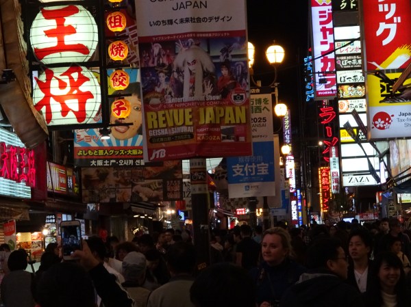 Noi am mers la Osaka de 2 ori, pe seară, cu trenul local de la Shin-Osaka. Am fost o dată în zona Osaka Station unde se află mai multe mall-uri și clădiri moderne și o dată la Dontobori, loc care mi-a amintit cumva de Times Square din New York, fiind plin de reclame uriașe luminoase. Dontobori este cartierul cu cea mai activă viață de noapte din Japonia. Acolo se găsesc zeci de restaurante, baruri, cluburi dar și magazine deschise până dimineața în zori.