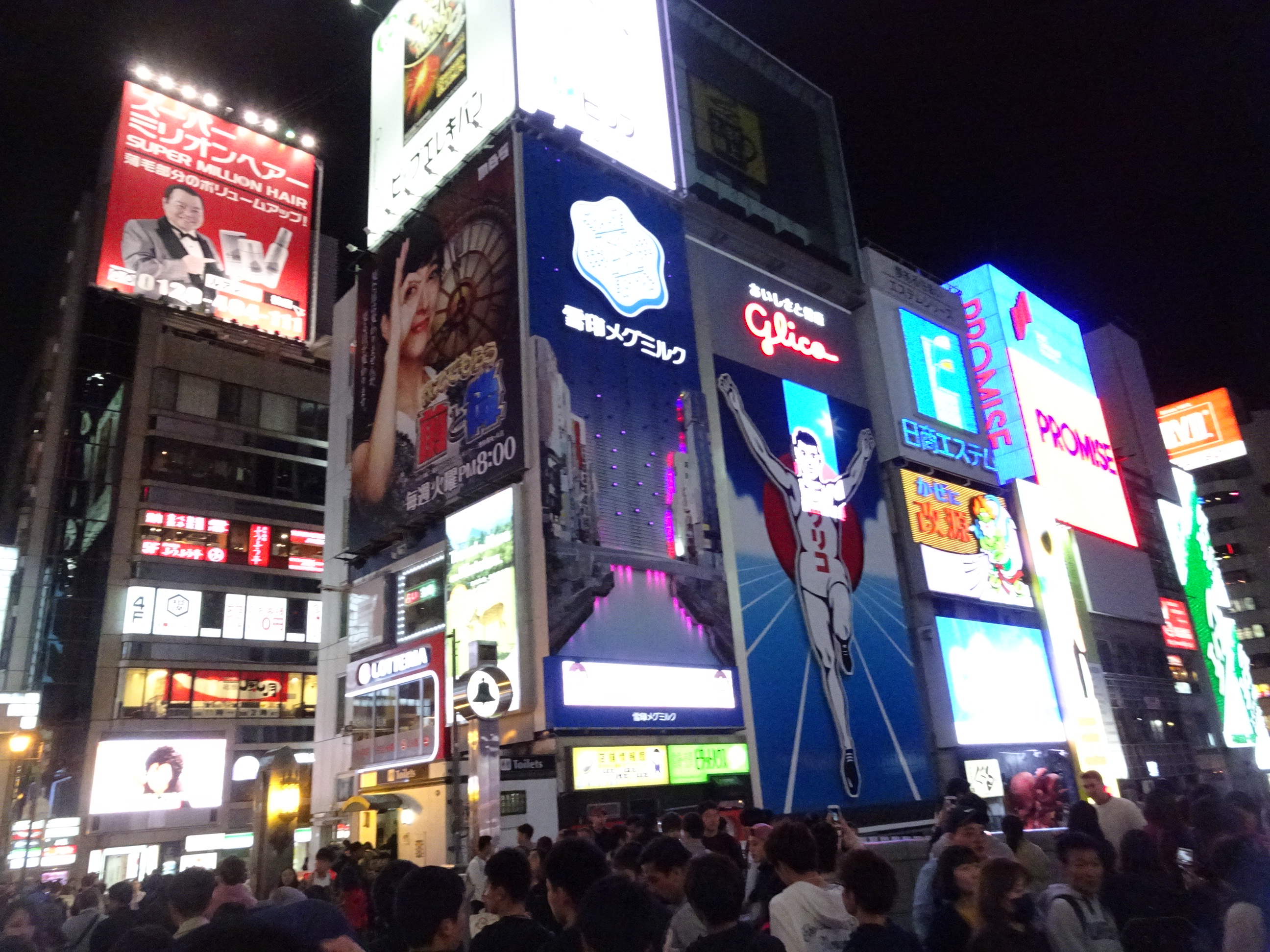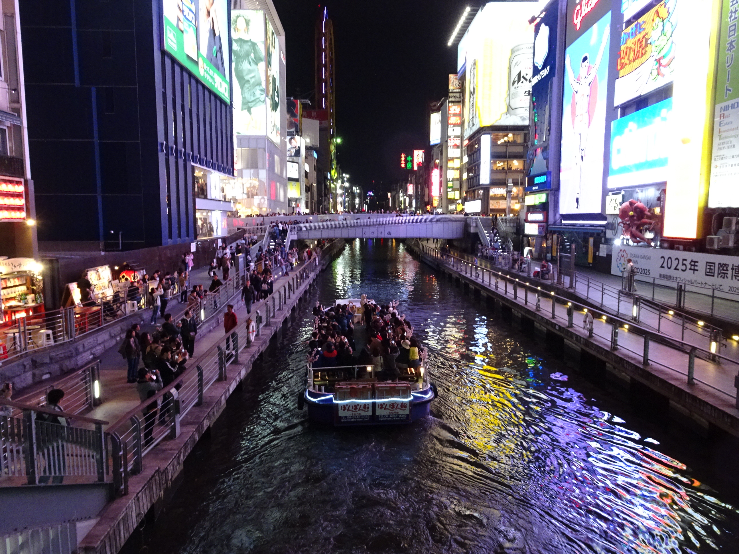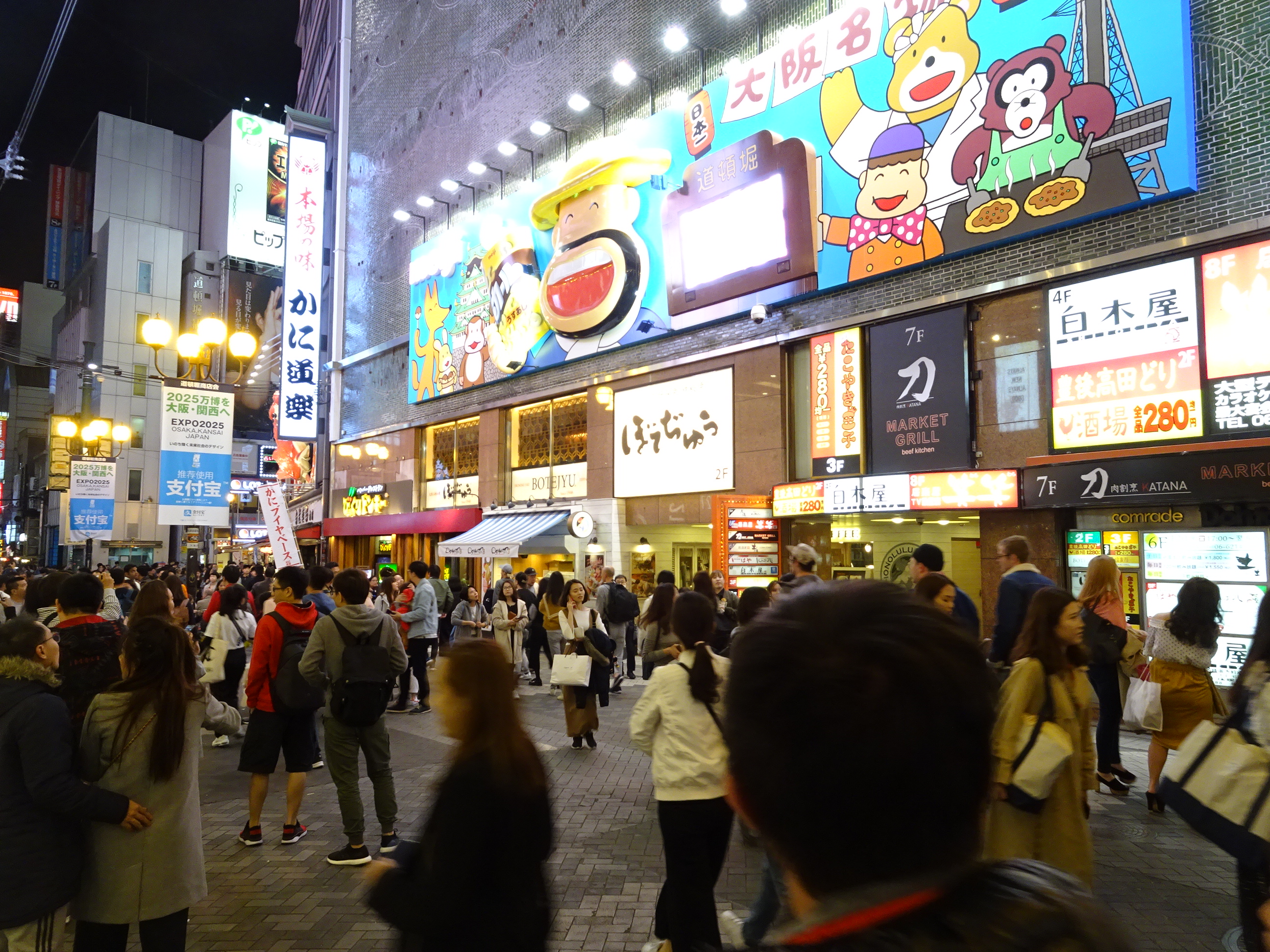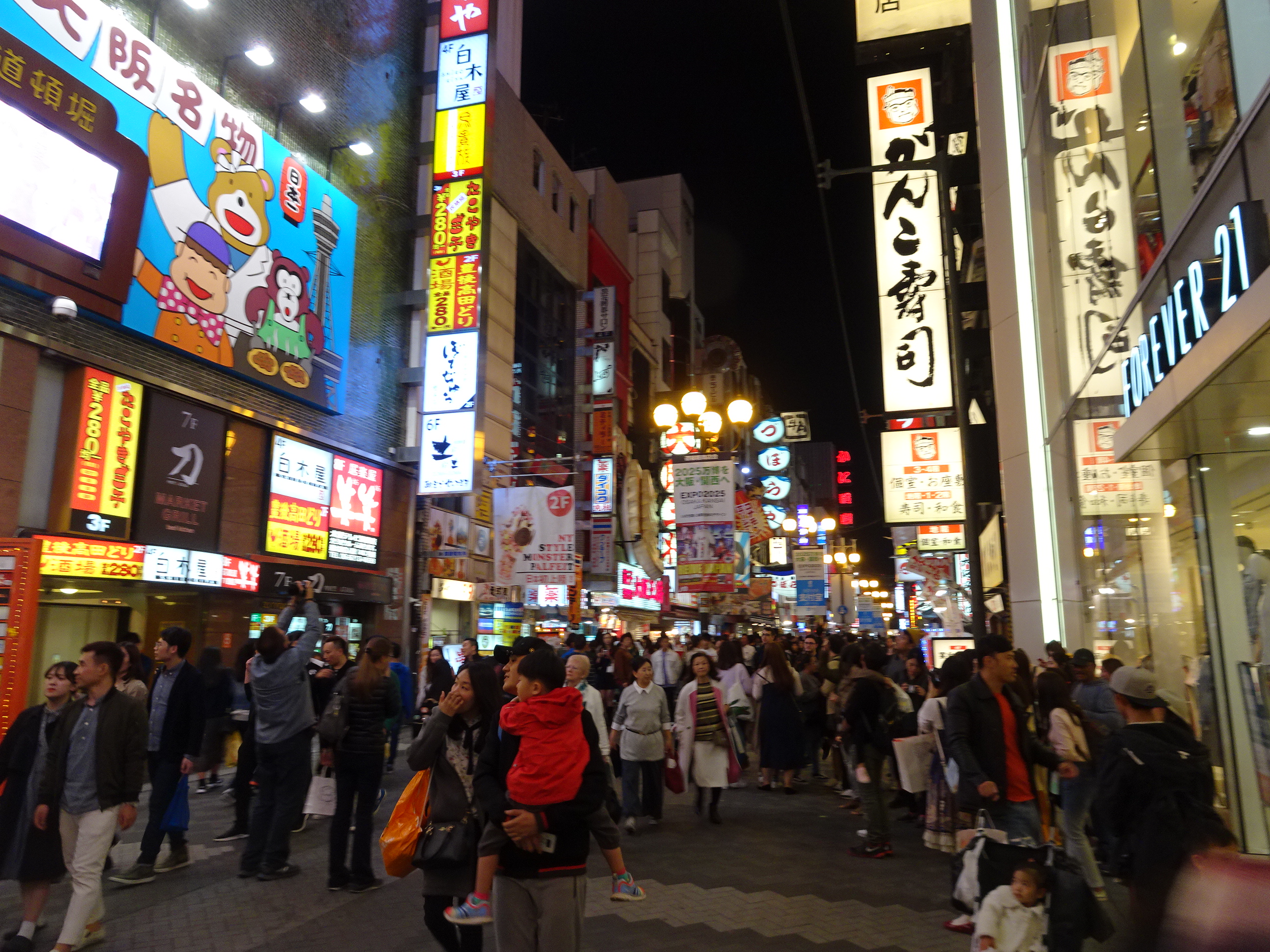 Noi am mers la Osaka de 2 ori, pe seară, cu trenul local de la Shin-Osaka. Am fost o dată în zona Osaka Station unde se află mai multe mall-uri și clădiri moderne și o dată la Dontobori, loc care mi-a amintit cumva de Times Square din New York, fiind plin de reclame uriașe luminoase. Dontobori este cartierul cu cea mai activă viață de noapte din Japonia. Acolo se găsesc zeci de restaurante, baruri, cluburi dar și magazine deschise până dimineața în zori.