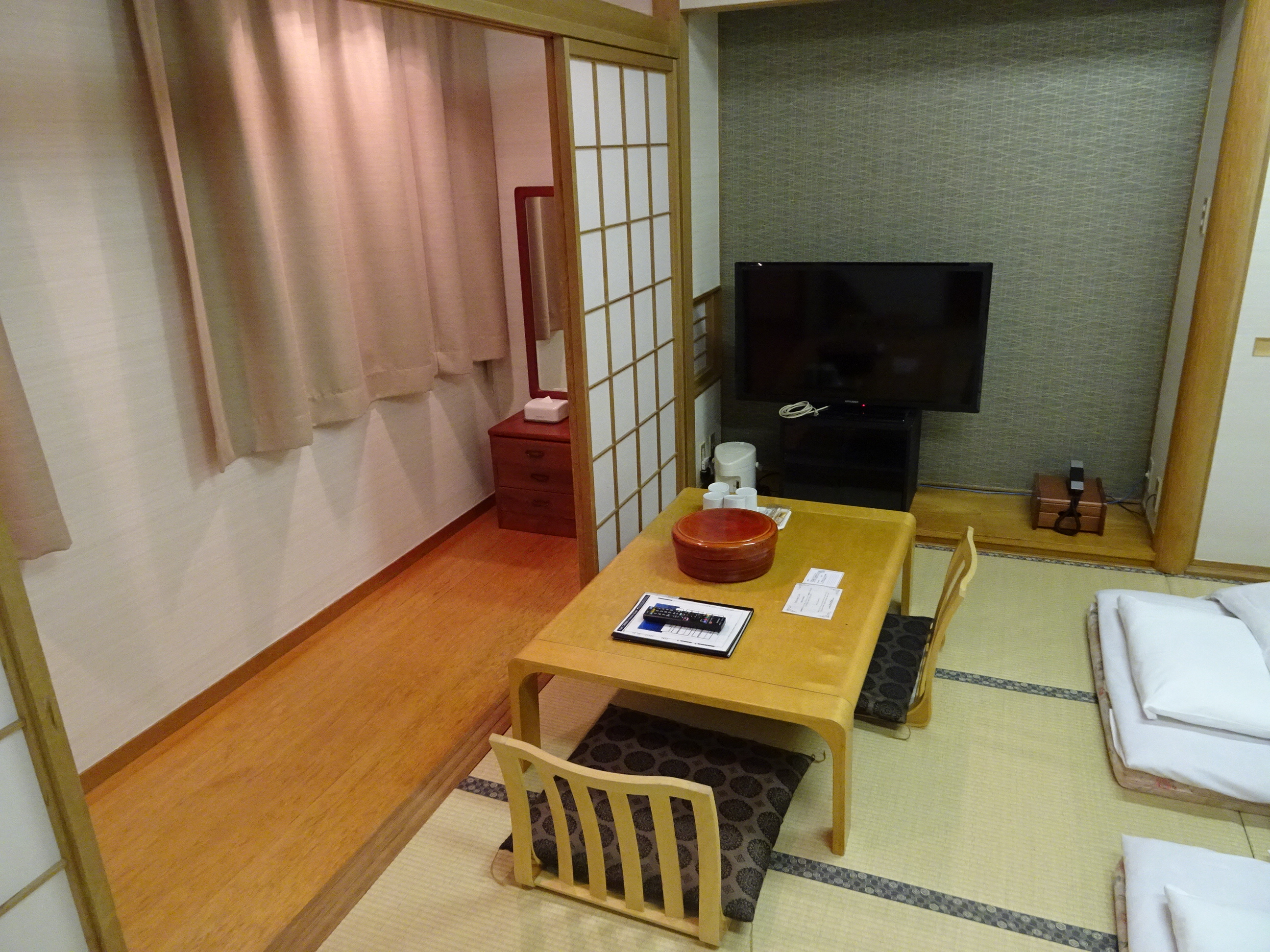 Noi am stat la hotelul Mielparque la 3 minute pe jos de Shin-Osaka, un hotel de 4 stele foarte confortabil. Am avut o cameră „japanese style” cu parchet de lemn, saltele pe jos și măsuță de ceai. Recomand oricui să încerce tipul aceste de cazare. Chiar dacă stăteam într-un turn modern de 20 de etaje, senzația era că suntem într-o căsuță de lemn la sat. Numai spun că acest tip de cameră este de obicei mult mai mare decât camerele standard de hotel. Cele mai multe camere de la hoteluri foarte bune din Tokyo sau Osaka nu au mai mult de 10 metri pătrați. Japanese room este ceva mai scumpă dar merită.