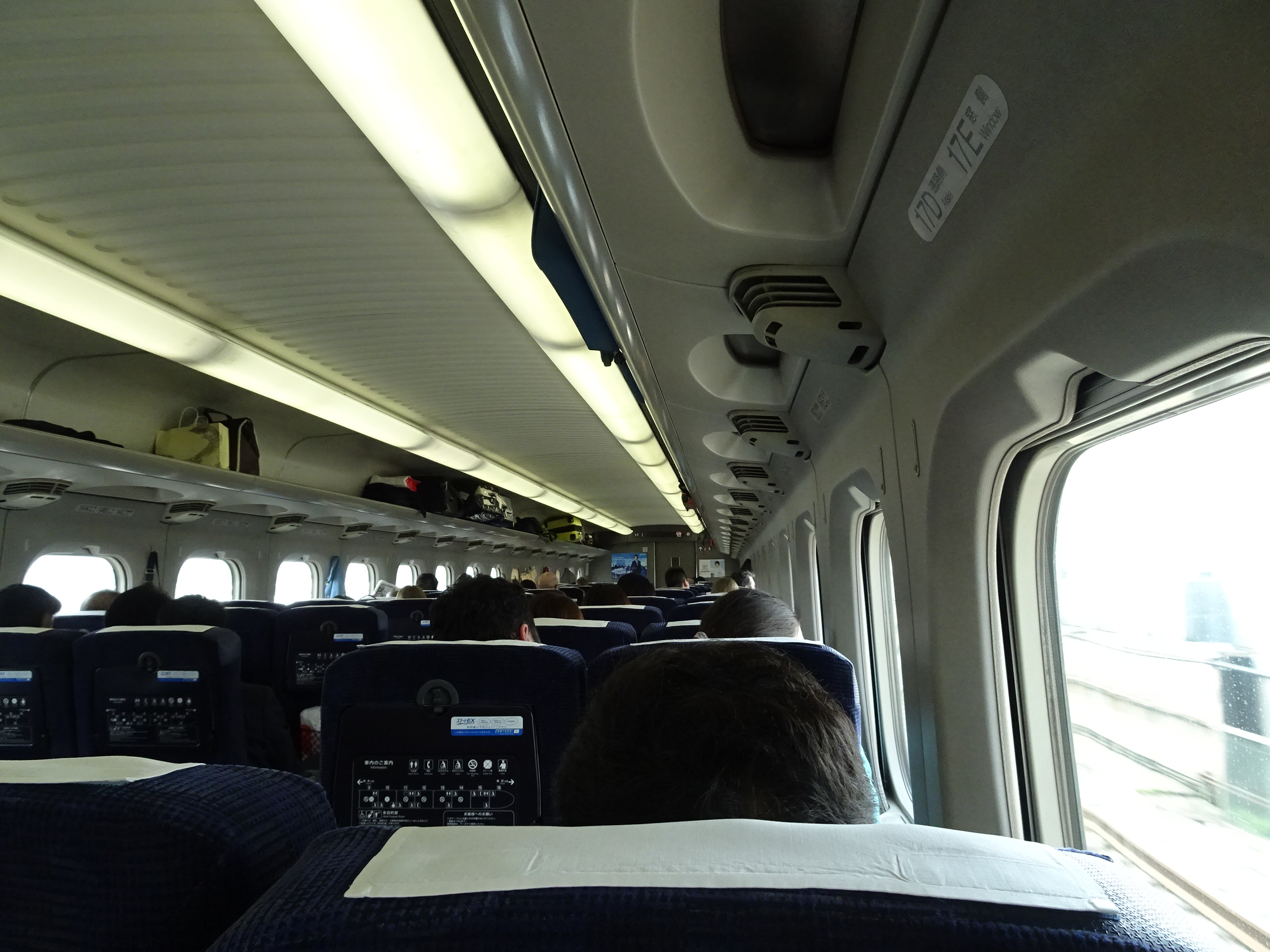 Vitezele la care ajung trenurile Shinkansen sunt de peste 300 km/h. Drumul este foarte confortabil și nu se simte niciun fel de zdruncinătură sau zgomot. Un lucru care m-a impresionat pe tren este eleganța conductorilor, care spune multe despre respectul japonezilor pentru clienți. Conductorul (nu pot să-i spun controlor pentru că nu întreabă pe nimeni de bilete) trece prin fiecare vagon cam o dată la 15 minute pentru a se asigura dacă pasagerii au nevoie de ceva. La fiecare intrare și ieșire din vagon face o plecăciune în semn de respect cu fața la călători. Plecăciunea este întotdeauna completă (nu doar o înclinare din cap) și se face chit că vagonul e gol, că toată lumea doarme sau că nu se uită nimeni la el. E impresionant să vezi asemenea nivel de respect.