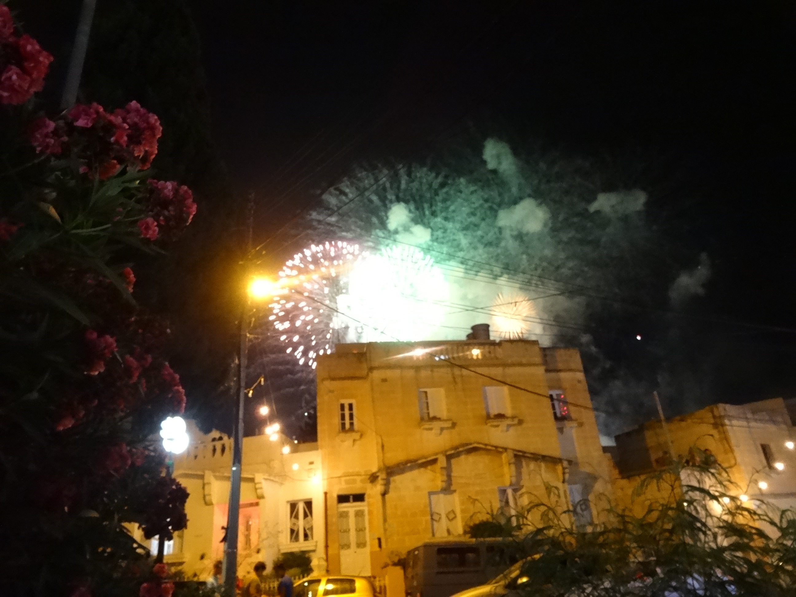 Ce am găsit la fața locului a fost mult peste așteptări. Mii de oameni pe străzile luminate de petrecere. Centrul sărbătorii din Lija era biserica satului decorată frumos. Înauntru aveau loc ceremonii religioase iar afară cânta fanfara locală. Am servit masa la unul din restaurantele din apropiere și am dat o tură pe la standurile cu dulciuri și suveniruri. Pe la 10 a început focul de artificii. A durat aproape o oră. Nu am văzut niciodată așa ceva în altă parte. Mai spre miezul nopții a început spectacolul pirotehnic la sol, o adevărată nebunie cu zeci de dispozitive explozive. Zgomotul a fost asurzitor și tot satul s-a umplut apoi de fum. Nu mi s-a părut tocmai sigur, dar cu certitudine a fost o experiență unică. Târziu în noapte am revenit către autobuz și mai apoi la hotel.