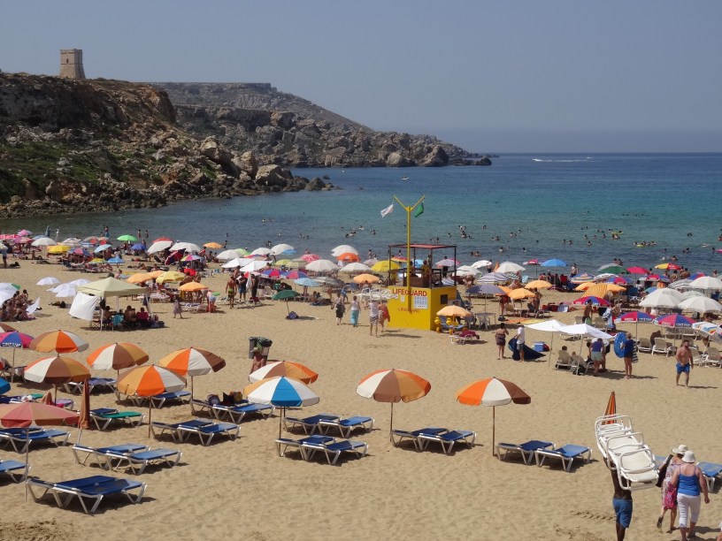 Malta nu este chiar locul ideal pentru o vacanță la plajă. Insula are foarte multe de oferit, în special locuri încărcate cu multă istorie și peisaje frumoase, dar plajele (cele cu nisip) lipsesc aproape cu desăvârșire. Insula Malta are maluri stâncoase iar majoritatea hotelurilor din stațiunile mari oferă șezlonguri la piscină sau pe pietrele de la mal unde marea este direct foarte adâncă.