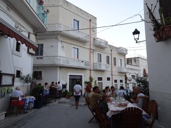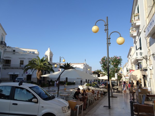 Ne-am mai plimbat pe străzile întortocheate din oraș și pe la magazinele de suveniruri – cele mai căutate sunt produsele alimentare sau cosmetice din măsline și oregano, cultivate local și pastele de Puglia. Reveniți la mașină am coborât dealul pe un alt drum cu serpentine, în direcția Mattinata – un sat aflat în vale, aproape de malul mării înconjurat de o mare plantație de măslini. Am găsit Mattinata in zi de sărbătoare, cu strada mare închisă și decorată. Acolo am rămas seara pentru a servi cina la una din terasele cochete din centru.