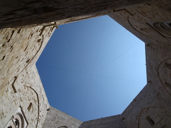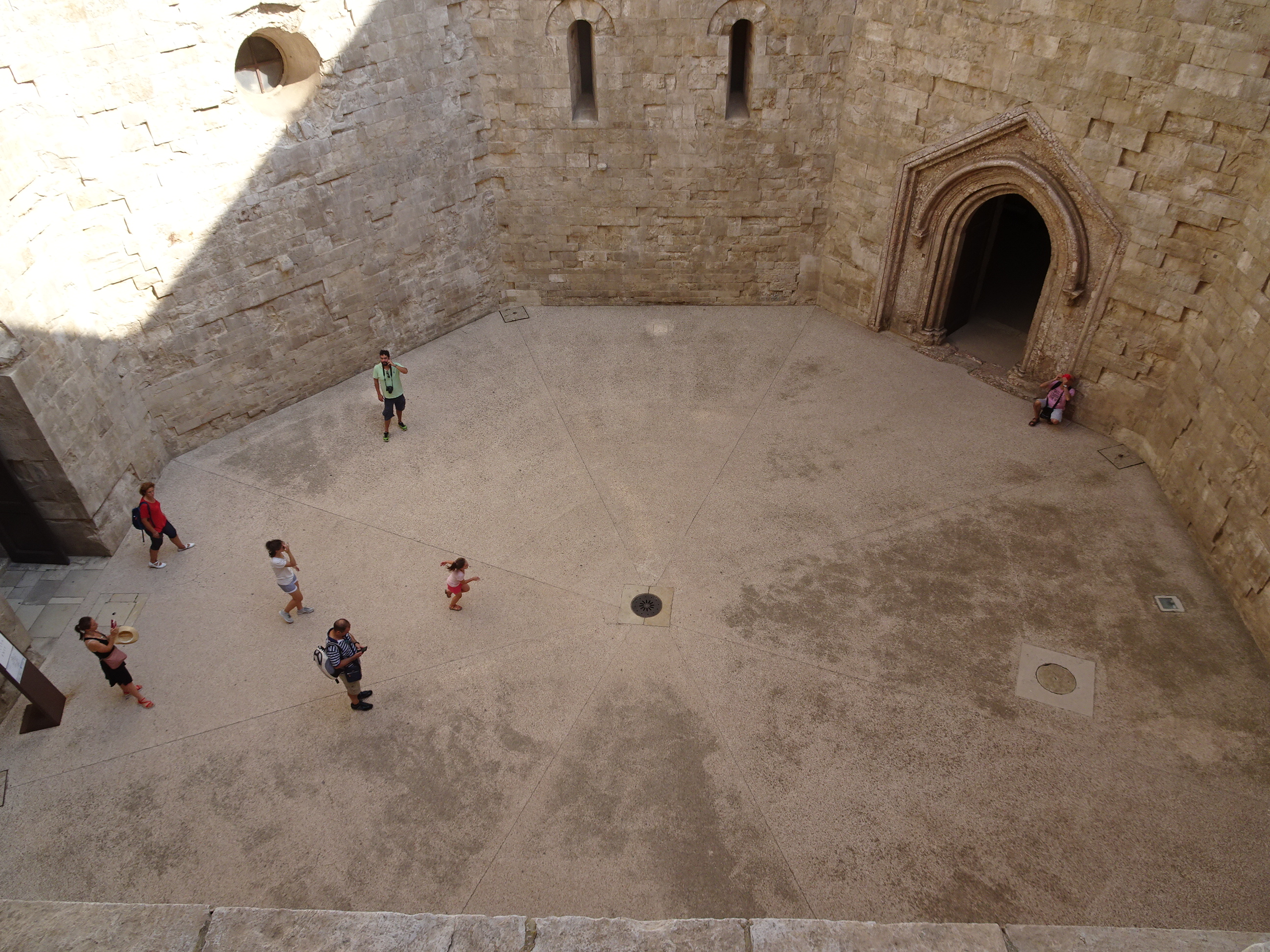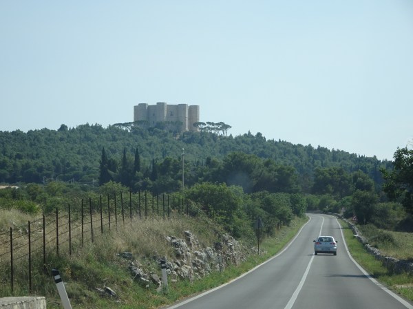 Pe drumul înapoi spre aeroportul din Bari, am mai vizitat două locuri: Castel del Monte și Trani. Aproape de orașul Andria se află un impozant castel fortificat în stil normand ce datează din secolul 13. Castel del Monte este construit într-un vârf de colină de unde se vede toată câmpia din Puglia până la mare. După ce am lăsat mașina într-o parcare la baza dealului am urcat cu un autobuz până la intrarea în castel. Biletul este destul de scump (15 euro) pentru a vizita exteriorul care nu este extrem de interesant dincolo de curtea sa hexagonală. Totuși castelul merită văzut, cel puțin de afară, pentru că nu seamănă cu niciun altul din lume.