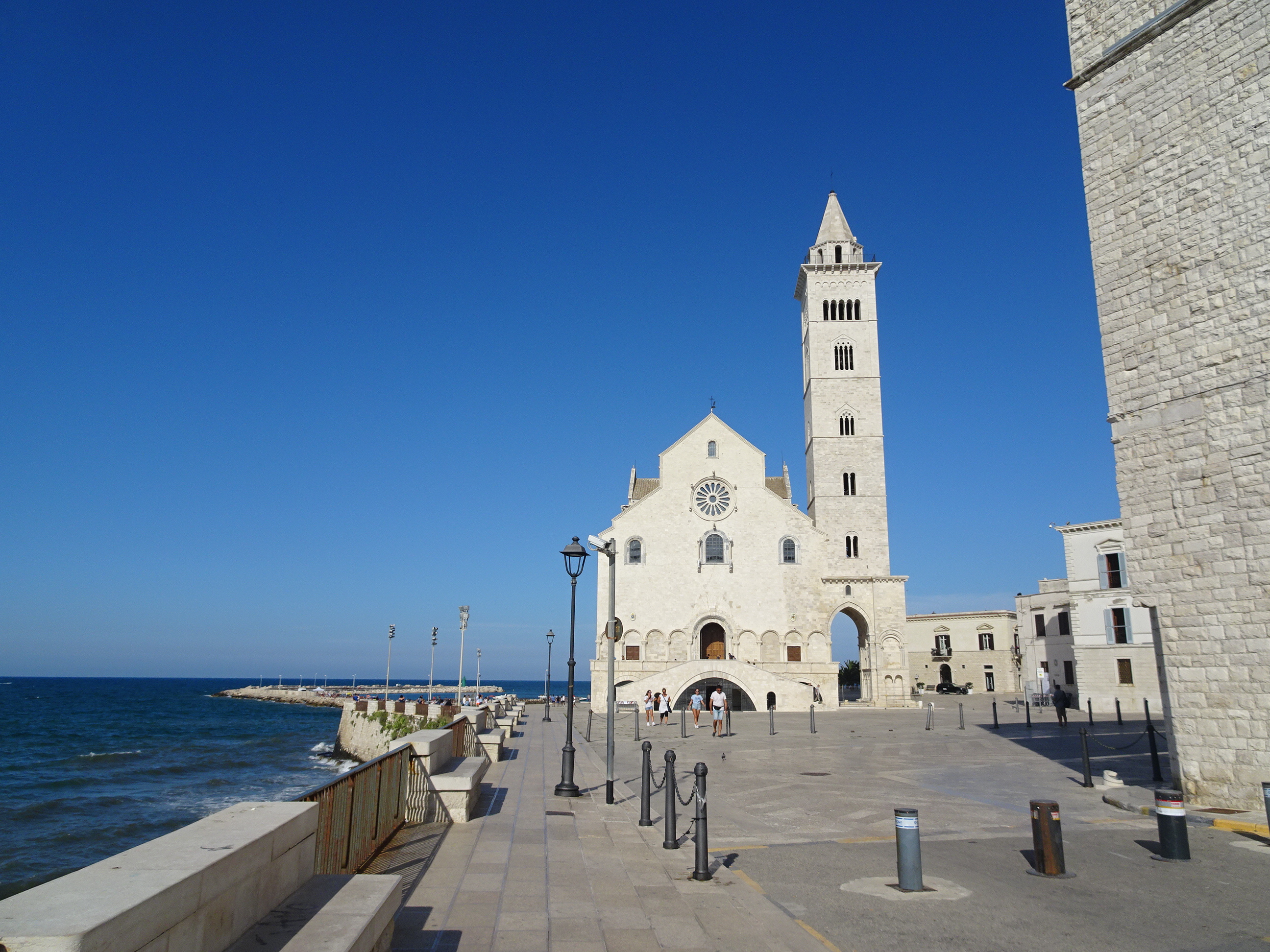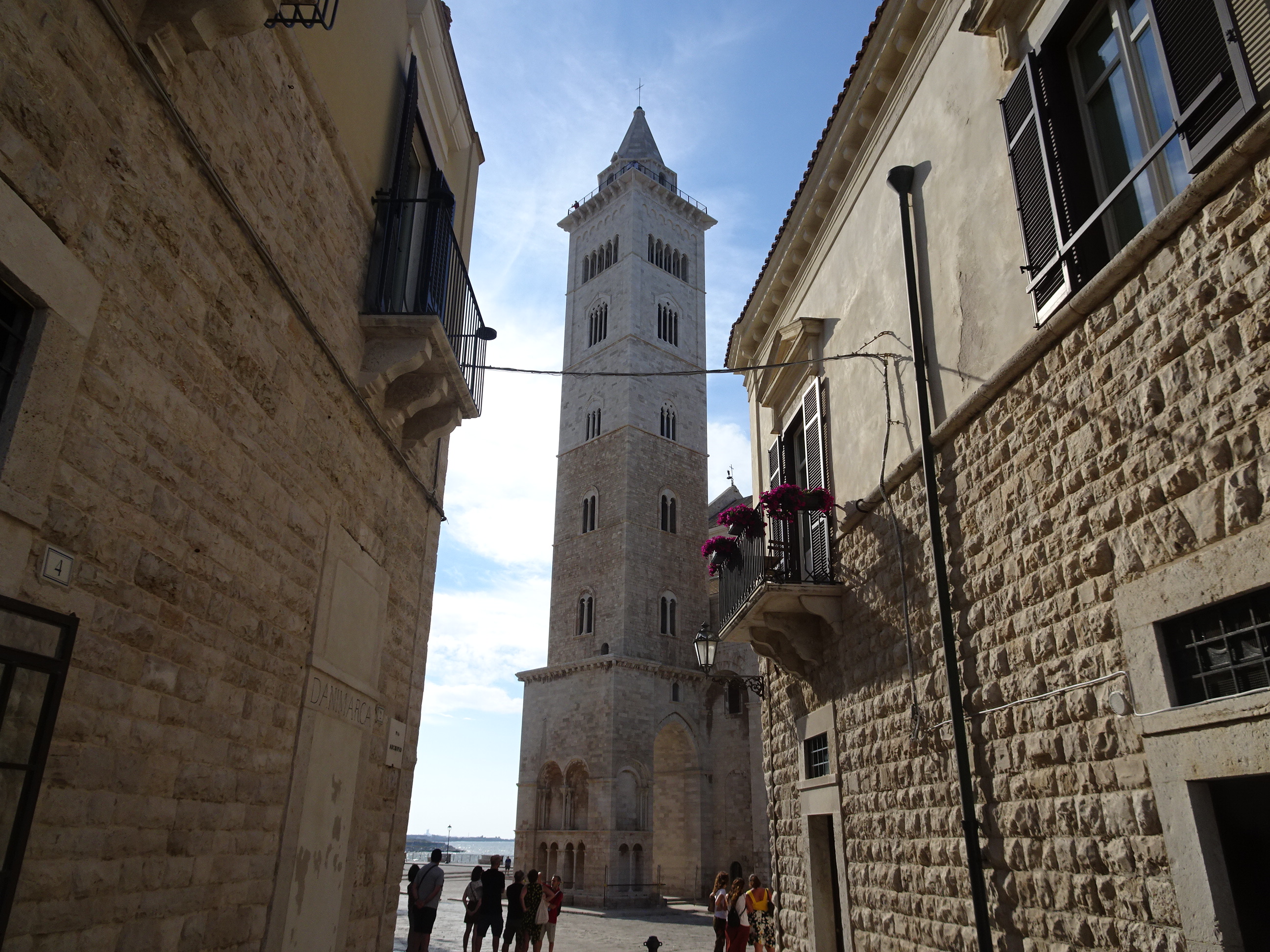 Mai departe, reveniți pe autostrada de la malul mării am vizitat orașul Trani. Acesta este un mic port care are un centru vechi foarte elegant cu un castel și o catedrală frumoasă. Catedrala este și principala atracție turistică. Construcția în stil romanesque începută în secolul 11 este considerată una din cele mai frumoase ale Italiei. De neratat este urcarea în turnul catedralei. Este destul de dificilă (sunt câteva sute de scări) dar vederile de sus merită efortul. Am mai servit masa la una dintre terasele din centru iar seara târziu am revenit la aeroportul Bari gata de a ne întoarce acasă.