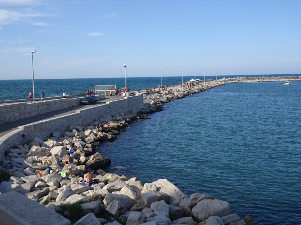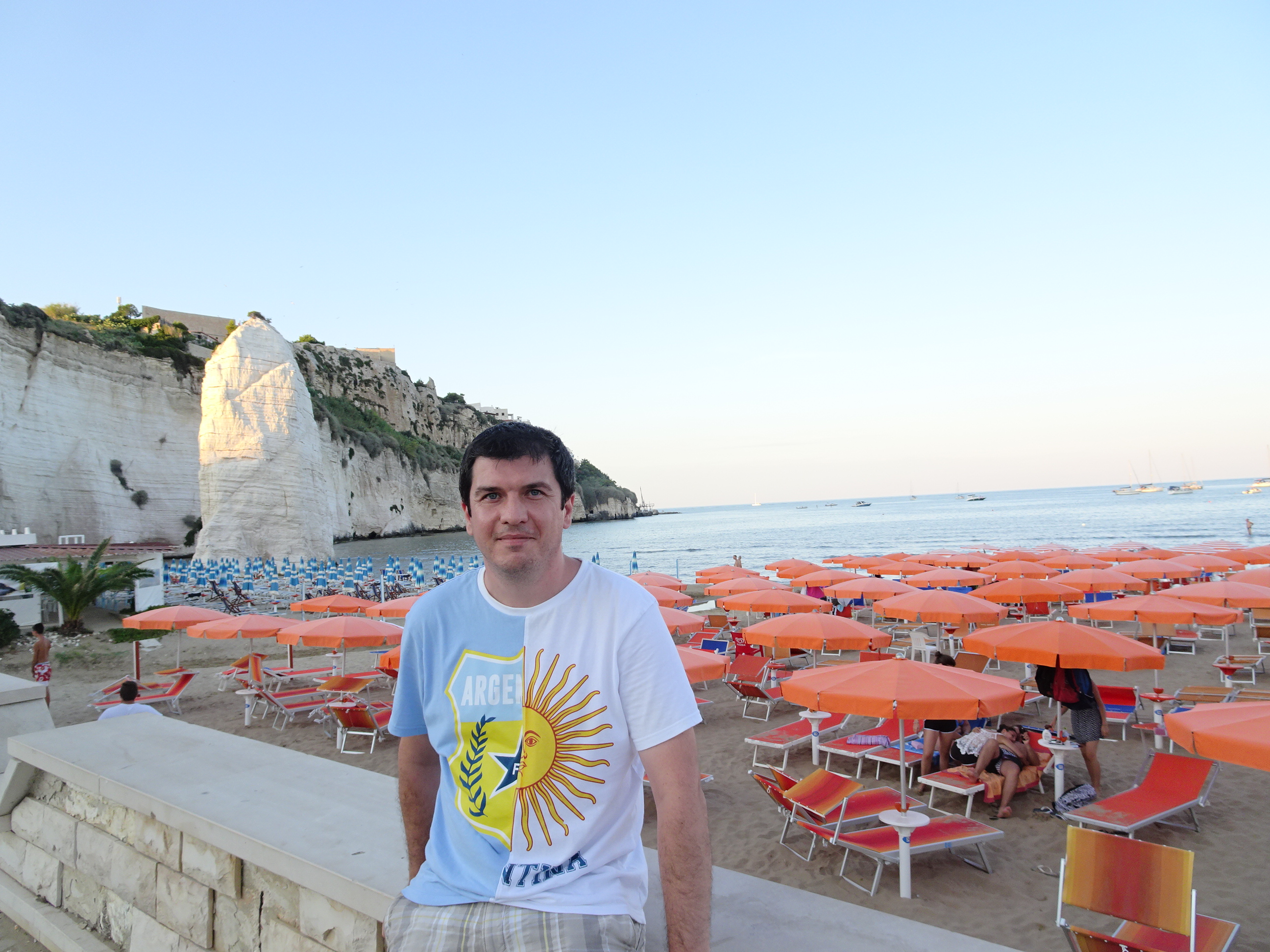 Prima zi am petrecut-o mai mult la plajă în Manfredonia. Stațiunea nu este foarte cunoscută – pe nedrept, din punctul meu de vedere. Plajele din Manfredonia sunt excelente – cu nisip fin alb, apă curată și marea care se adâncește foarte lin. La fel ca mai peste tot prin Italia, toate plajele amenajate sunt private. Se pot închiria șezlonguri și umbrele iar tarifele pentru 2 persoane variază între 10 și 20 de euro pe zi. Am prins și o vreme excelentă – temperaturi maxime de 30 de grade (sub media perioadei) și fără vânt – așa că valurile Adriaticii erau foarte line. Altfel, Manfredonia este un oraș cochet, cu un centru vechi elegant, un mare castel ca obiectiv turistic principal și multe plaje frumoase.