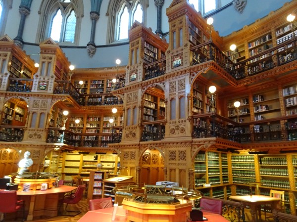 Nu am intrat în Parlament decât după un control de securitate foarte strict. Înauntru am vizitat câteva camera elegante, sala senatului și locul unde premierul Trudeau se întâlnește cu invitații străini. Cea mai frumoasă încăpere este cu siguranță mare bibliotecă, o cameră elegant decorată care adăpostește sute de mii de volume inclusiv constituția Canadei. Pe parcursul turului am aflat multe informații despre istoria Canadei și organizarea sa constituțională. Totul a durat cam o oră. La final se mai putea urca în turn doar că era o coadă mult prea mare și am preferat să plecăm prin oraș.