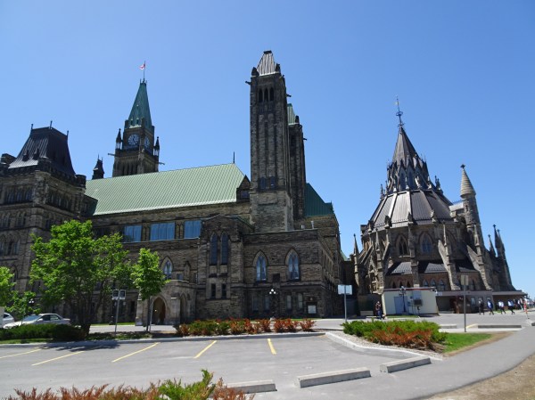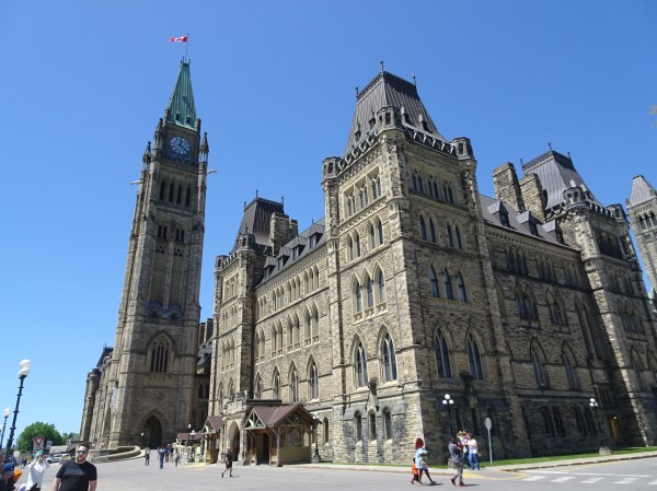 Pe la prânz am mers în centrul orașului. Ottawa se află pe malul râului cu același nume iar în mijloc este Parliament Hill, unde se află principalele clădiri guvernamentale. Arhitectura aduce mult cu stilul britanic iar clădirea parlamentului seamănă cumva cu cel din Londra și cu Big Ben. Zilnic se fac tururi ale parlamentului cu ghid iar biletele sunt gratuite. Am mers la casa de bilete pentru a face rezervare, iar tururi în engleză nu mai erau decât seara târziu astfel că am ales un tur în franceză care începea mai repede. Am mai avut timp de o scurtă plimbare pe Parliament Hill iar apoi a sosit ghida și am început turul.