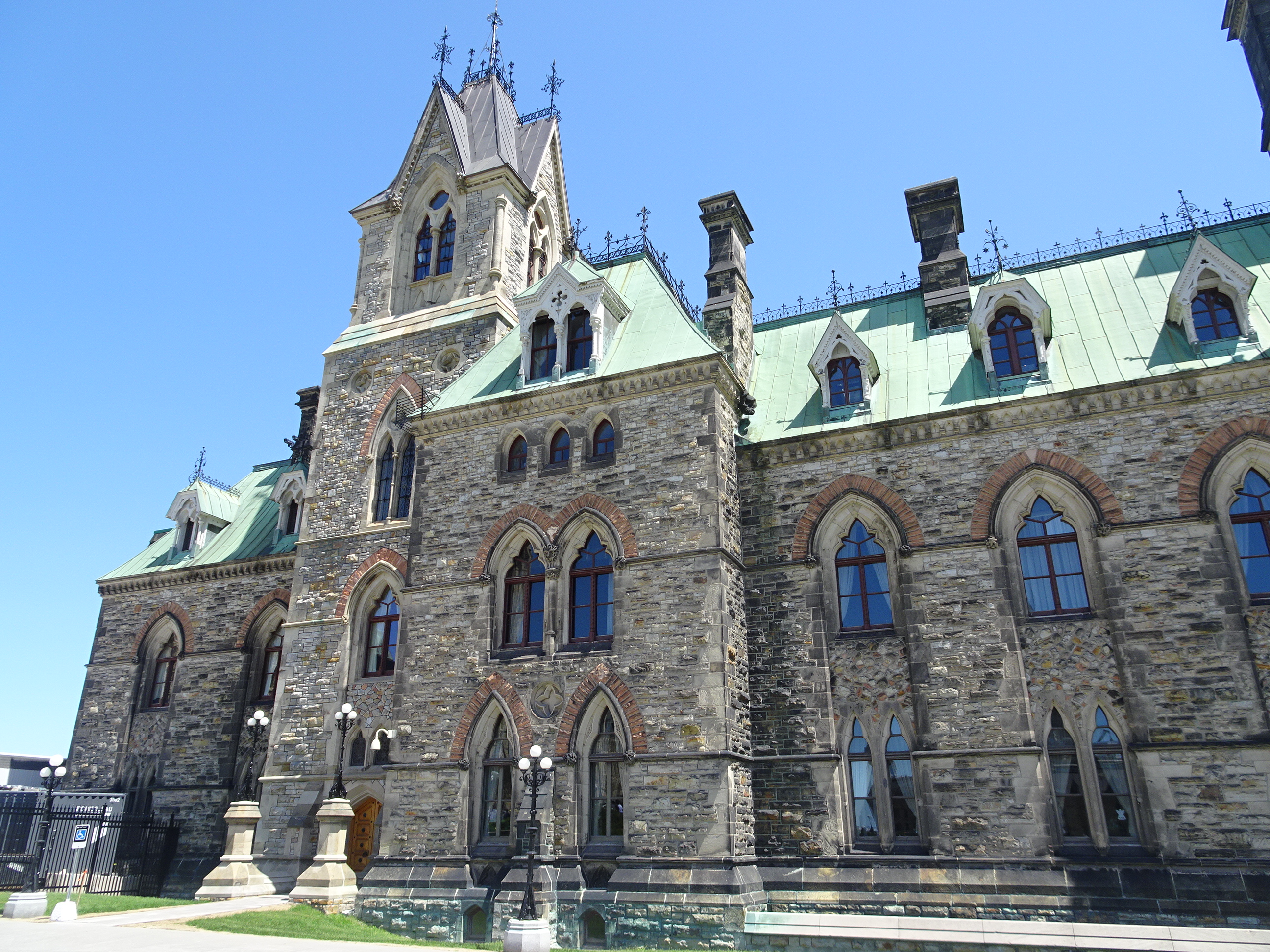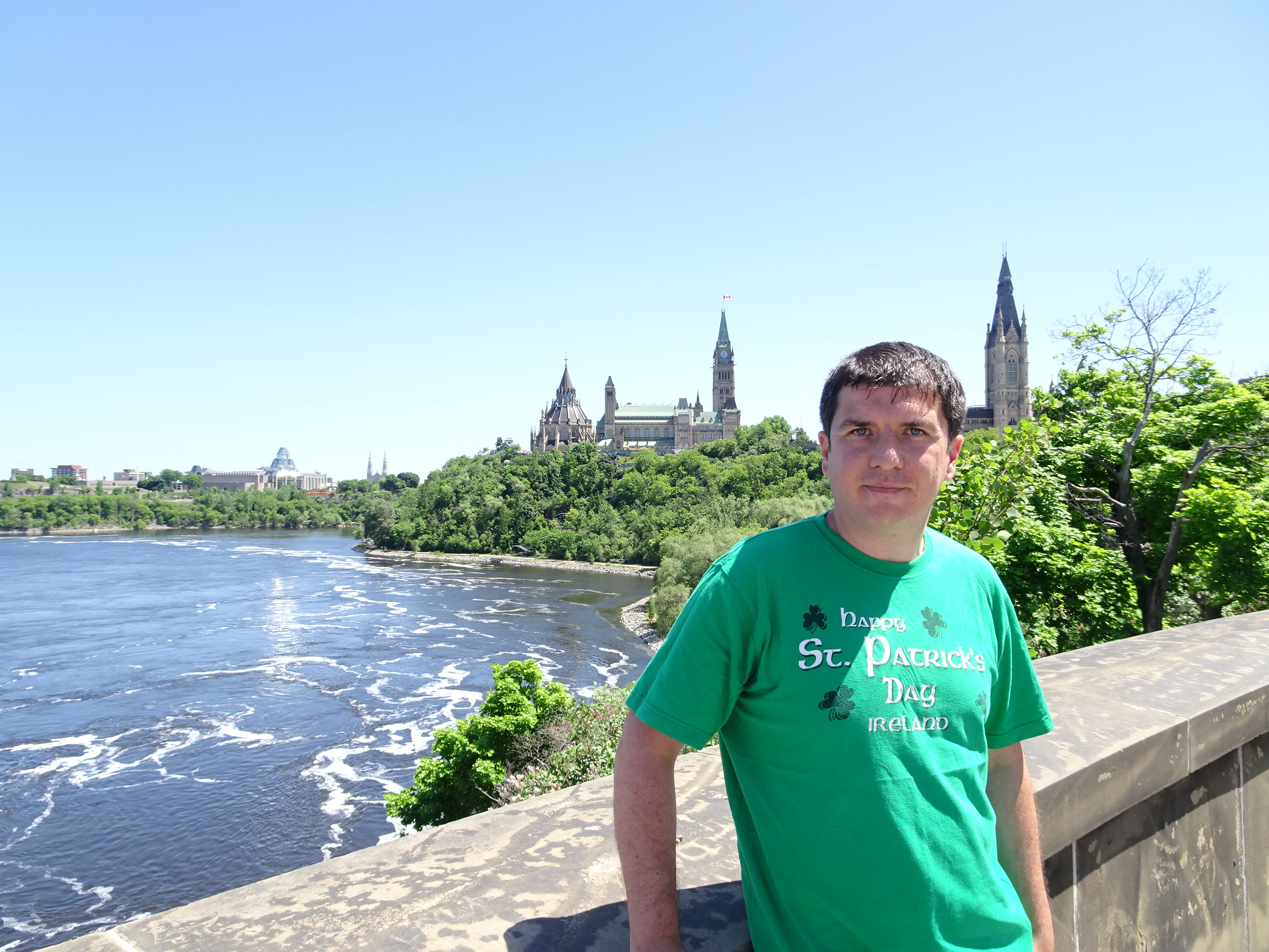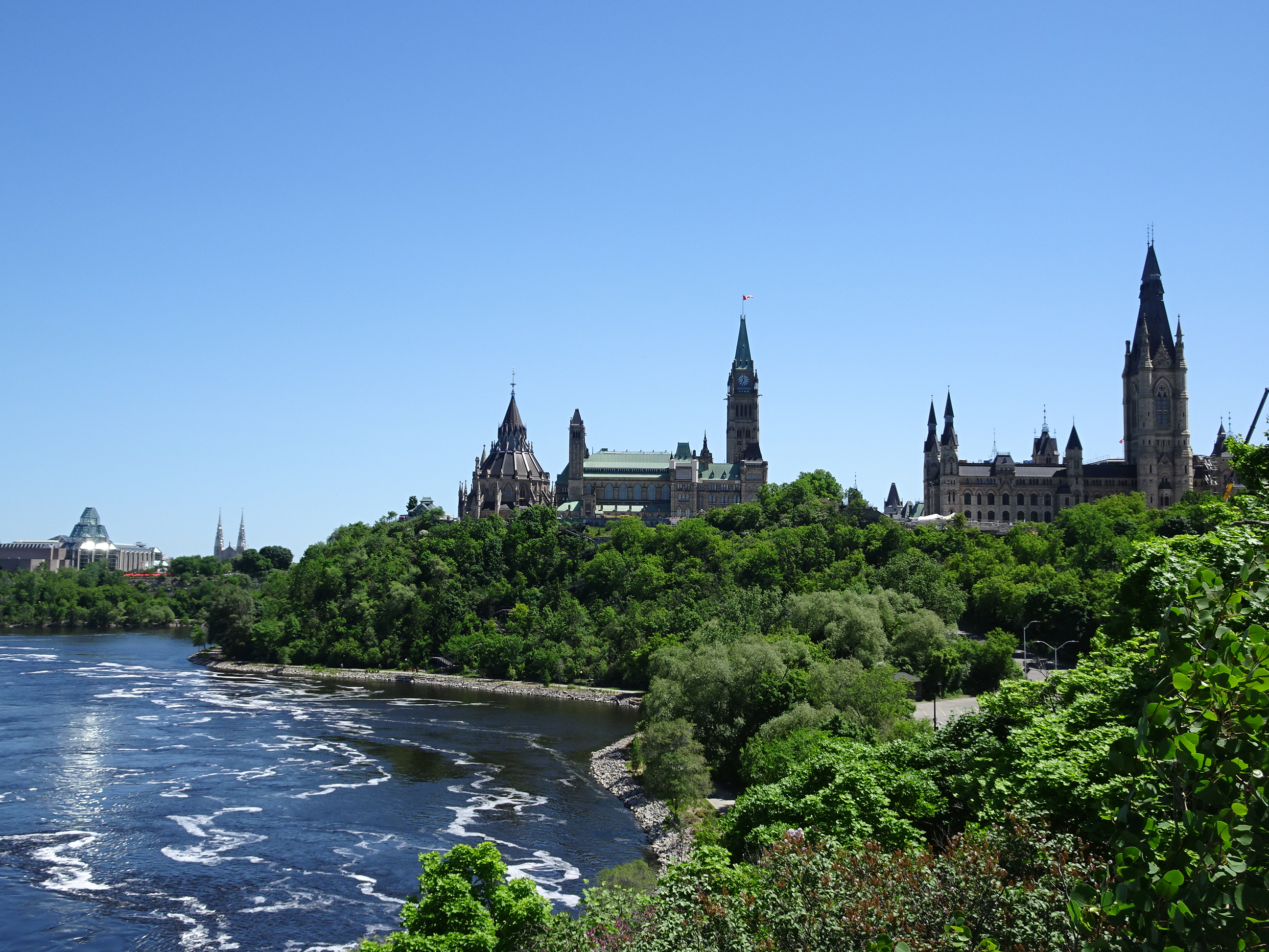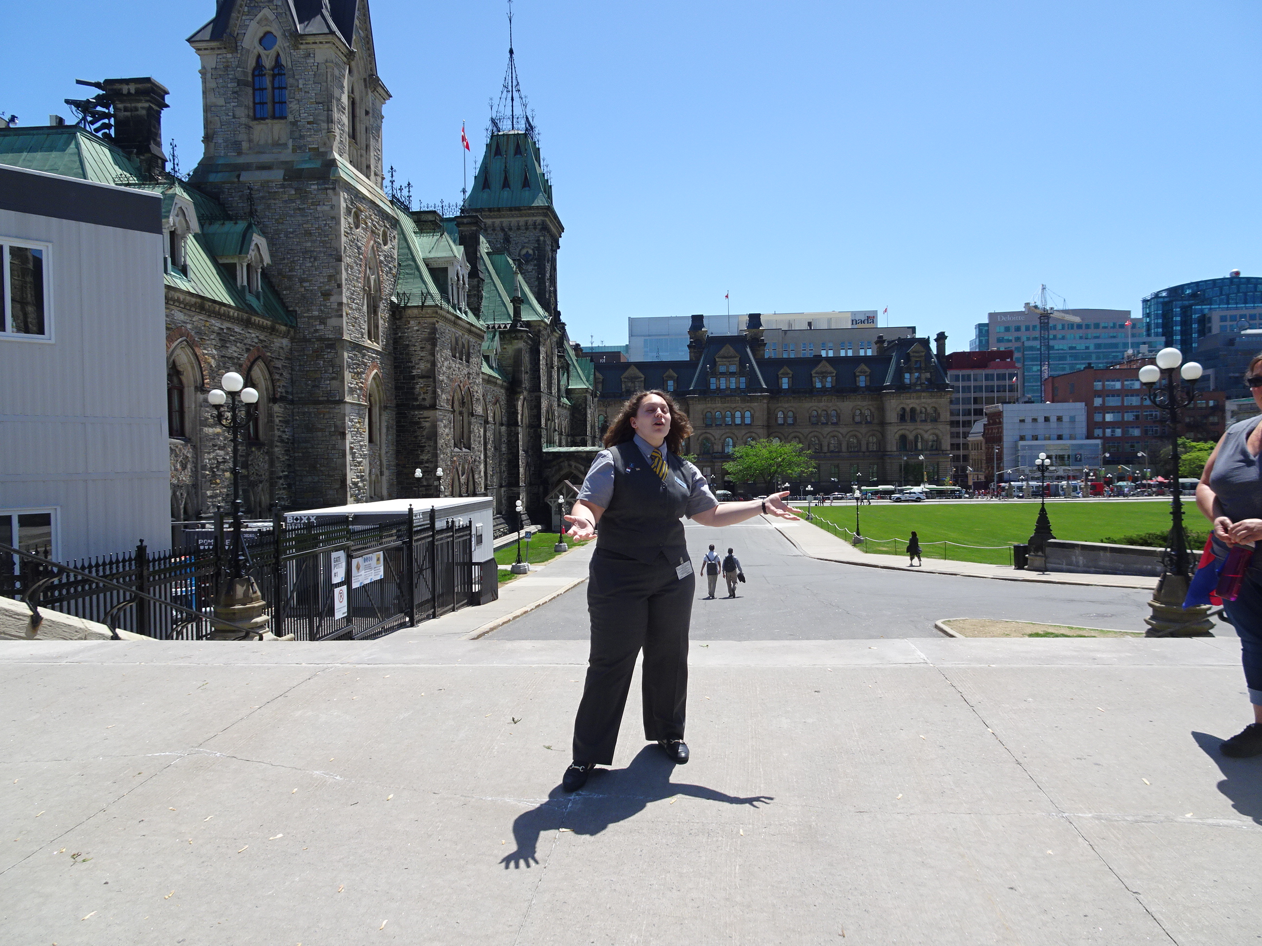 Pe la prânz am mers în centrul orașului. Ottawa se află pe malul râului cu același nume iar în mijloc este Parliament Hill, unde se află principalele clădiri guvernamentale. Arhitectura aduce mult cu stilul britanic iar clădirea parlamentului seamănă cumva cu cel din Londra și cu Big Ben. Zilnic se fac tururi ale parlamentului cu ghid iar biletele sunt gratuite. Am mers la casa de bilete pentru a face rezervare, iar tururi în engleză nu mai erau decât seara târziu astfel că am ales un tur în franceză care începea mai repede. Am mai avut timp de o scurtă plimbare pe Parliament Hill iar apoi a sosit ghida și am început turul.