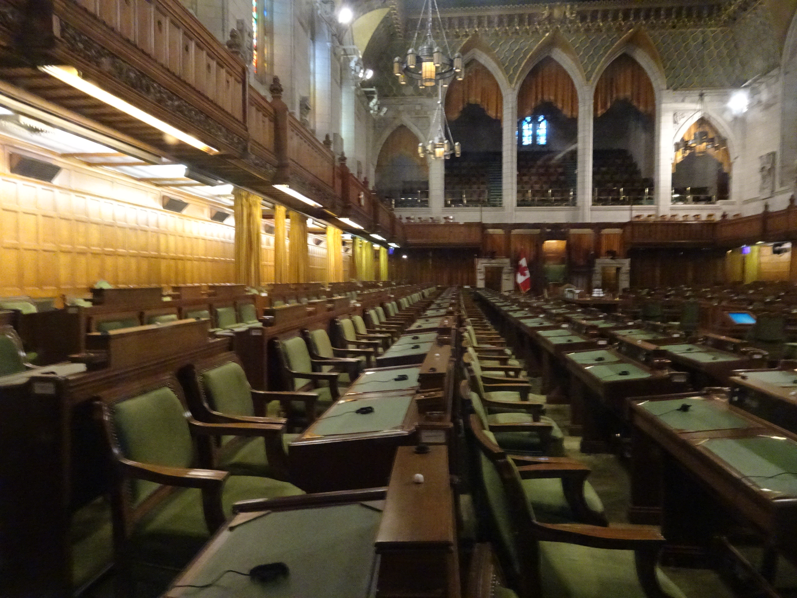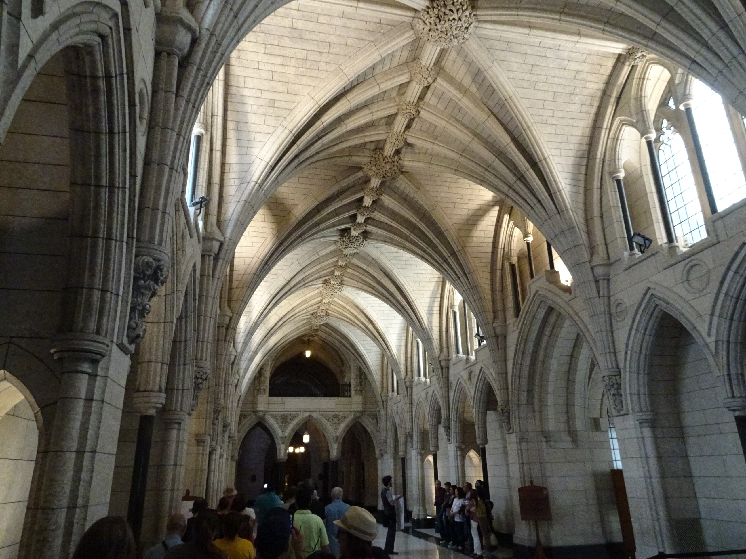 Nu am intrat în Parlament decât după un control de securitate foarte strict. Înauntru am vizitat câteva camera elegante, sala senatului și locul unde premierul Trudeau se întâlnește cu invitații străini. Cea mai frumoasă încăpere este cu siguranță mare bibliotecă, o cameră elegant decorată care adăpostește sute de mii de volume inclusiv constituția Canadei. Pe parcursul turului am aflat multe informații despre istoria Canadei și organizarea sa constituțională. Totul a durat cam o oră. La final se mai putea urca în turn doar că era o coadă mult prea mare și am preferat să plecăm prin oraș.