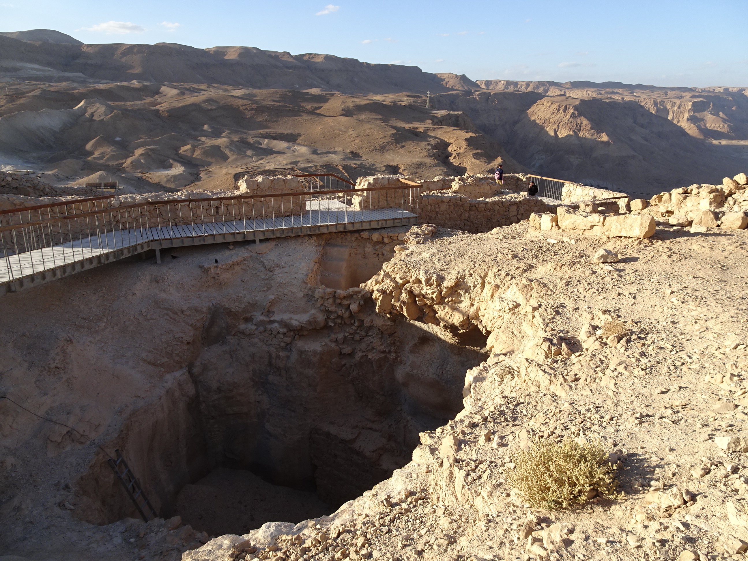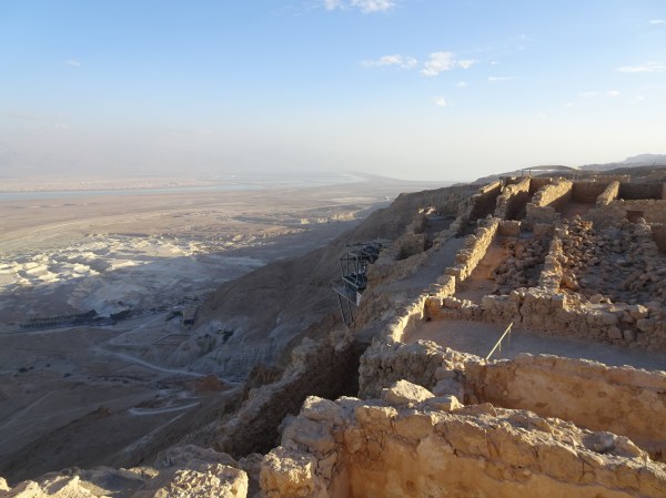 Cetatea Masada a fost construită de regele Irod ca fortificație de apărare într-un loc strategic, un deal proeminent care oferă vederi de 360 de grade la mulți kilometri depărtare. Vorba vine deal, pentru că Masada are doar 60 de metri înălțime, diferența de nivel fiind dată de faptul că zona din jur este sub nivelul mării, la aproximativ -400. Rămas în istorie este asediul Masadei făcut de romani în anii 73-74. Prin acele vremuri Masada adăpostea în special evrei refugiați după distrugerea celui de-al doilea templu. Romanii au încercat în zadar să cucerească cetatea și singurul mod prin care au putut cuceri a fost să construiască o rampă din pământ pentru a ajunge la ziduri. Construcția a durat aproape un an, iar când atacul roman devenise iminent, locuitorii din Masada au decis să își ia viața decât să fie obligați să renunțe la credință, momentul fiind evocat în mai multe scrieri din istoria israeliților. Cetatea este întinsa pe o zonă mare cu multe fortificații și ruine dar și câteva clădiri foarte bine păstrate, în special câteva camere din fostul palat al lui Irod. Pe soarele splendid, plimbarea de la Masada a fost momentul meu preferat din tot turul în Israel.