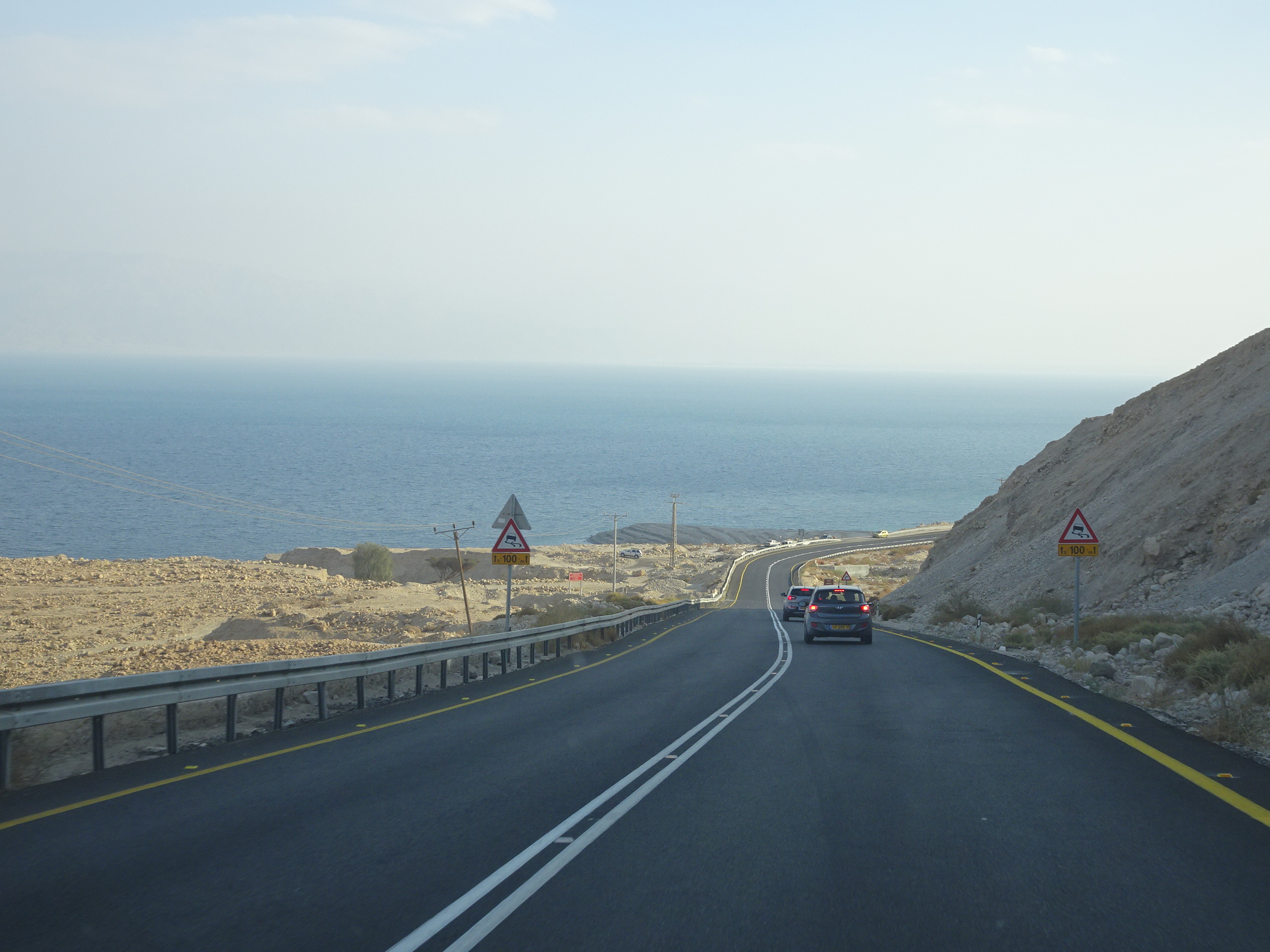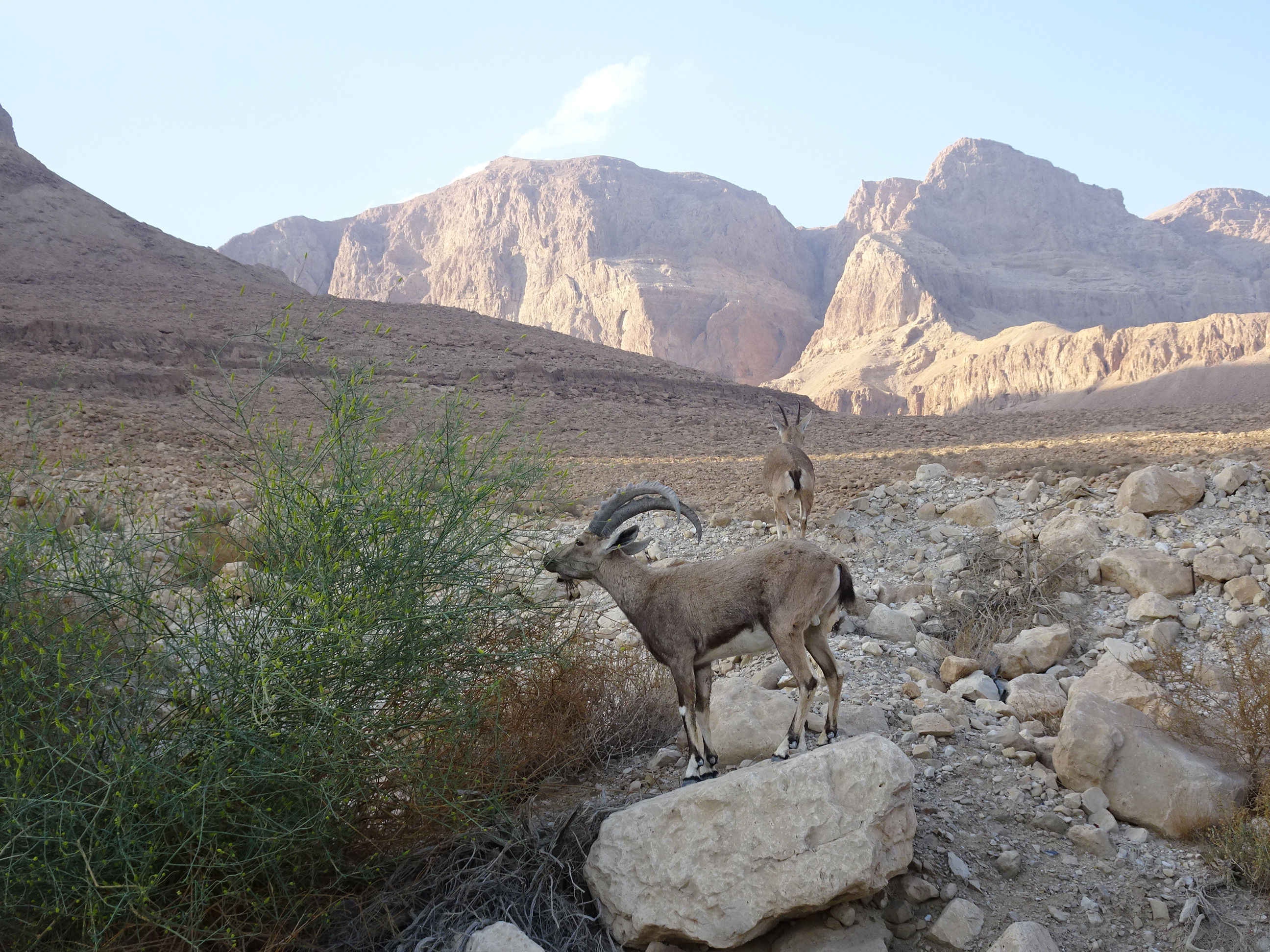 După prânz am părăsit Ierusalim și am revenit pe același drum către Marea Moartă. Am prins și un blocaj în trafic datorat unui control al armatei israeliene, iar după vreo două ore am sosit pe malul apei. Am întâlnit mai multe capre ibex care se hrăneau și ele din puținele plante verzi de la marginea drumului.