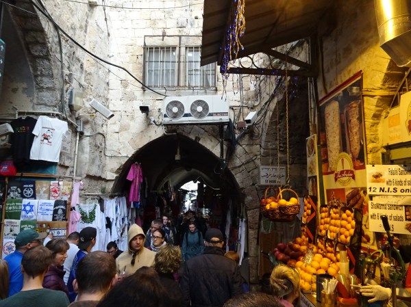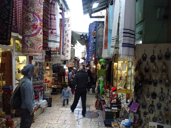 Cu greu am găsit un loc de parcare apoi aproape de zidurile cetății. Am parcat într-un final, după multe ture, la garajul subteran Mamilla aproape de poarta Jaffa iar apoi am luat-o la pas prin centrul vechi. E greu să nu te rătăcești prin bazarul din Ierusalim, mai ales când vitrinele și tarabele colorate iți iau ochii. Am traversat bazarul multicolor și aglomerat ca întotdeauna și a fost nevoie de gps pentru a ieși din cotloanele întortocheate.