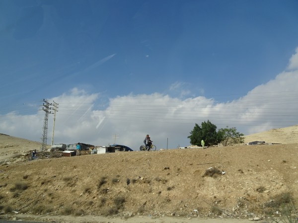 După ce am făcut stânga pe autostrada 1 spre Ierusalim am început să observăm de o parte și de alta a drumului așezările palestiniene. Am trecut foarte aproape de Ierihon pe unde am văzut mulțime militari și apoi ne-am apropiat de punctul de control dinainte de Ierusalim. Diferențele între așezările palestiniene și coloniile israelienilor din zonă sunt remarcabile – unele sunt bărăci și case unde se trăiește într-o sărăcie lucie iar celelalte sunt adevărate fortificații apărate de ziduri și garduri cu sârmă ghimpată. Nu pot spune că ne-am simțit în pericol pe drum, dar mai degrabă ne-au întristat contrastele și sărăcia în care trăiesc unii palestinieni.