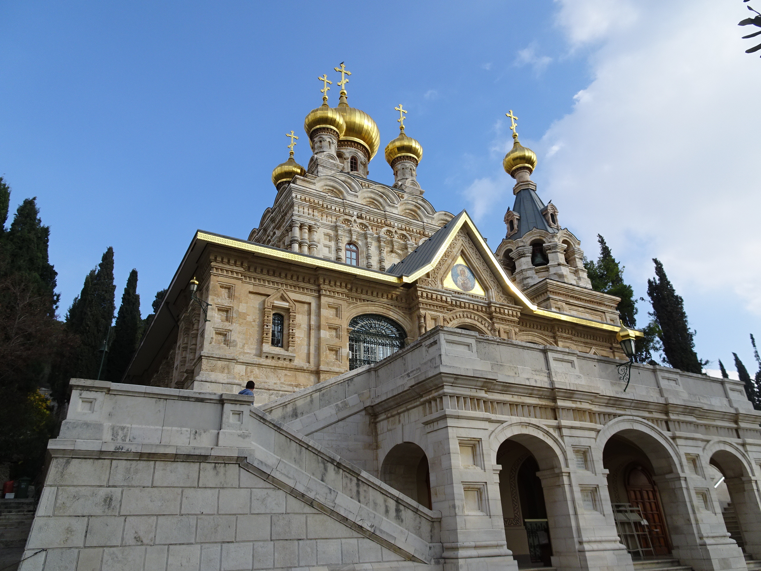 Am mers direct la muntele măslinilor, locul de unde se vede cea mai frumoasă priveliște peste vechiul Ierusalim. Acolo am vizitat câteva biserici bine-cunoscute, pe unde mai fusesem: frumoasa biserică rusească cu turle a Mariei Magdalena, biserica catolică a înălțării și grădinile Ghetsimani, locul Cinei cea de taină unde se pot vedea câțiva din cei mai vechi măslini din lume.