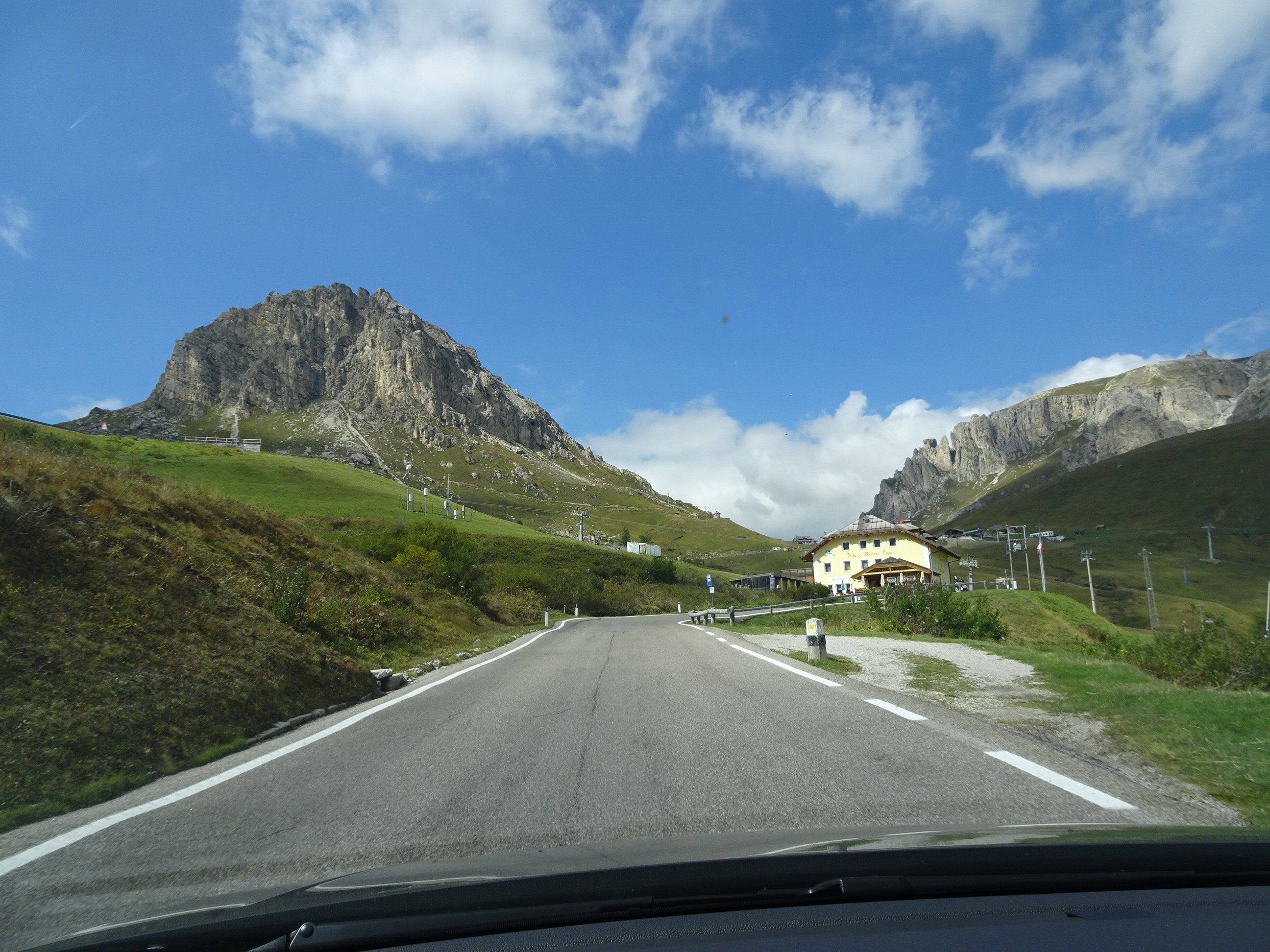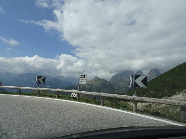 După Belluno practic am intrat în Dolomiți. Mai departe drumul are o singură bandă și trece prin multe sate și stațiuni șerpuind printre versanții abrupți ai munților.