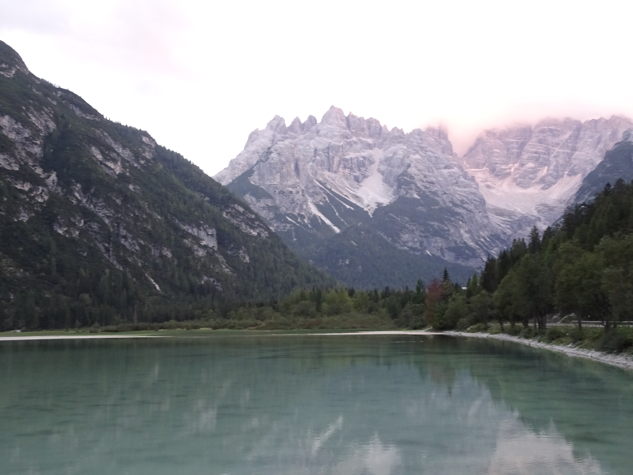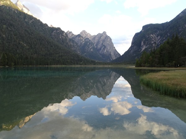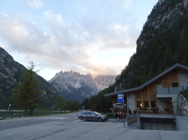 La întoarcere am mai făcut o oprire la lacul Toblach (Dobbiaco în italiană) aproape de orașul cu același nume. Am prins încă lumină și am zăbovit puțin pe malul lacului pentru a savura vederea sub ultimele raze ale soarelui.