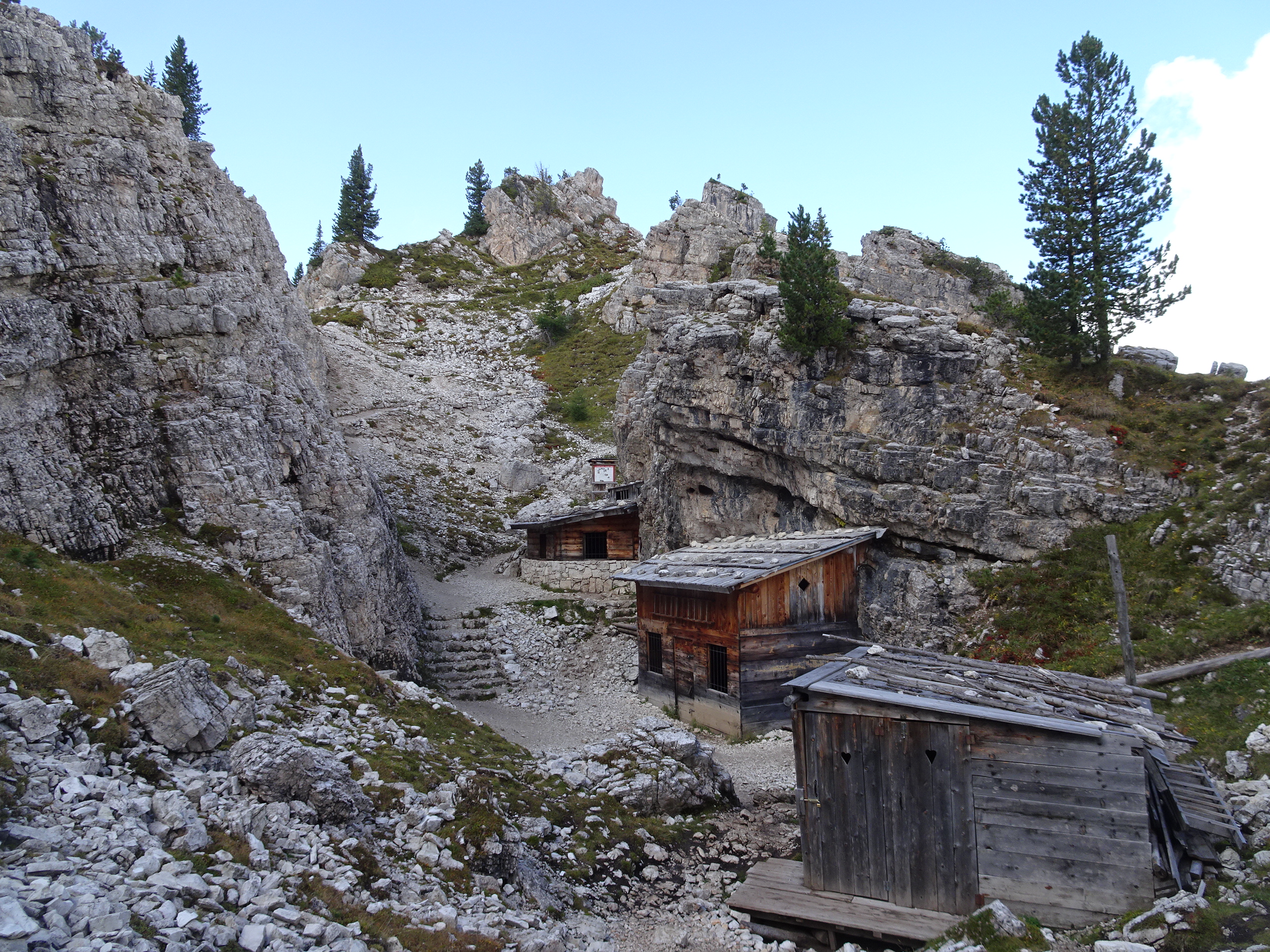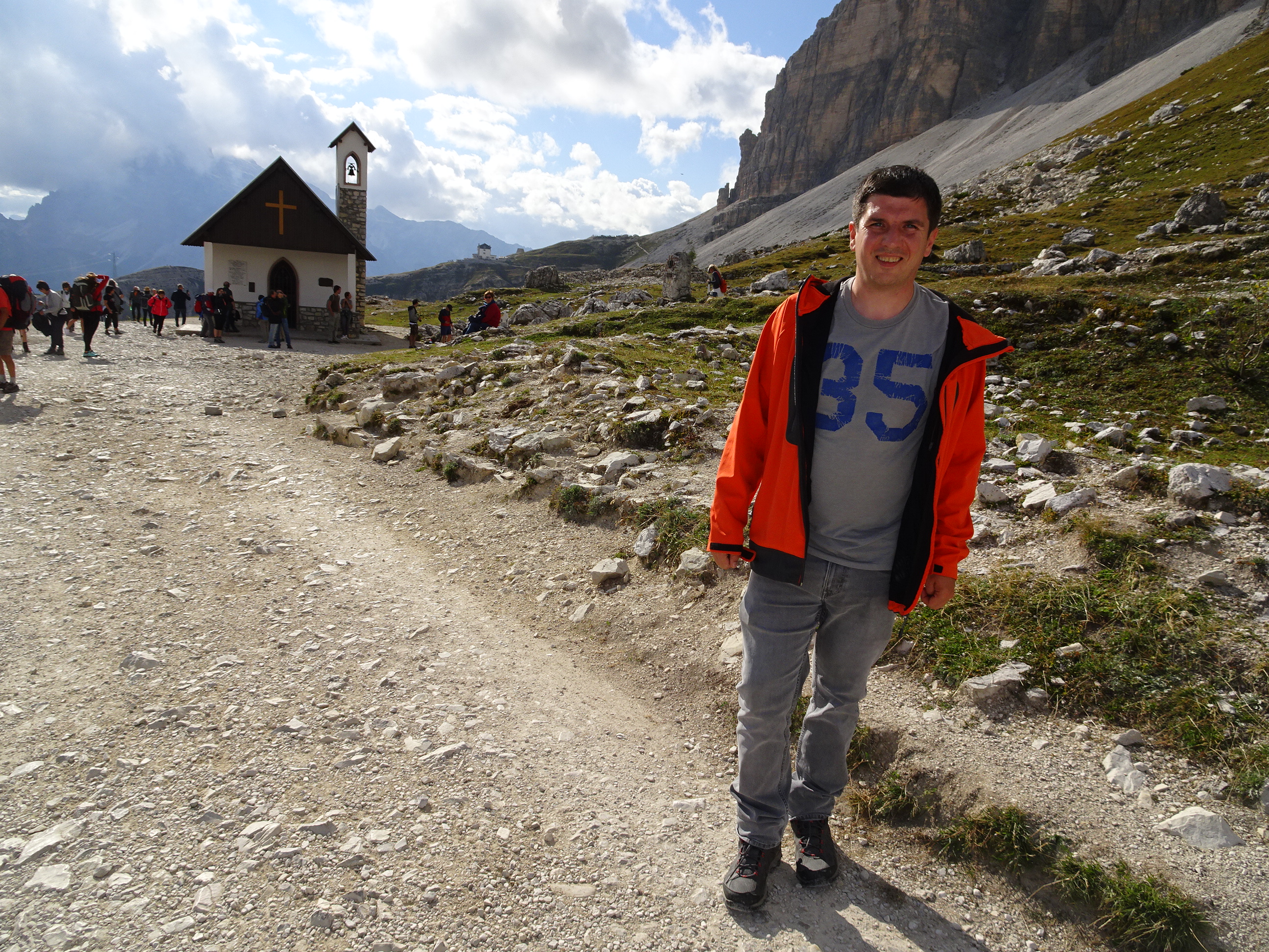 La pas grăbit am ajuns la refugiul Lavaredo în doar jumătate de oră. De acolo se văd cel mai bine cele trei vârfuri. Doar câțiva nori se strecurau printre piscuri și în restul cerul era albastru. Când am plecat de acasă se anunțau ploi puternice și nici nu am fi visat să avem o vreme atât de frumoasă. Am avut mare noroc.