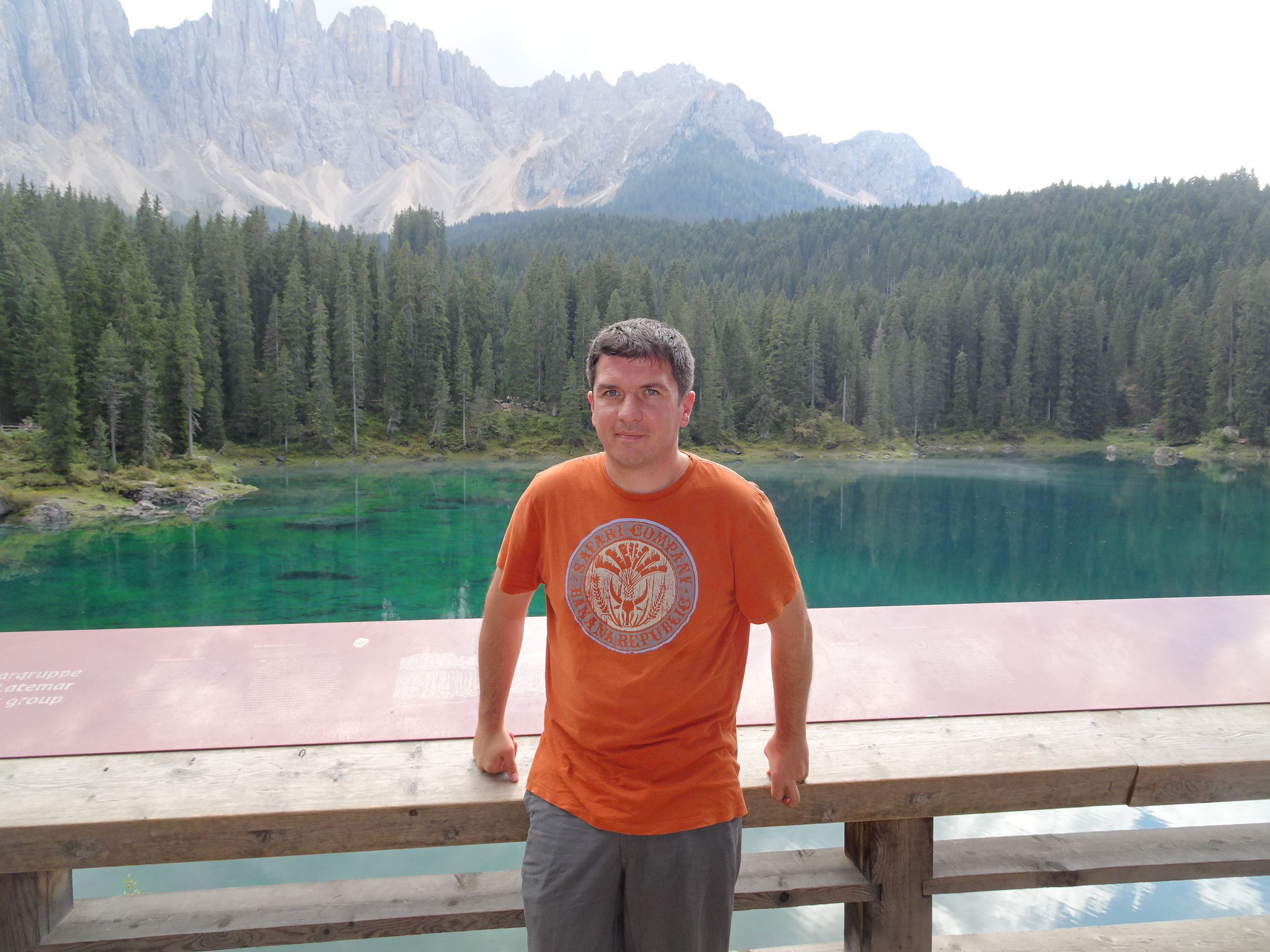 Am mai oprit la un alt lac frumos al Dolomitilor: Karersee (Lago di Carezza). Apa lacului are o culoare verde-turcoaz aproape desprinsă dintr-un tablou. Tot la Carezza am trecut pe la restaurant unde am gustat specialități locale tiroleze: bratwurst, pretzel și bere weiss.