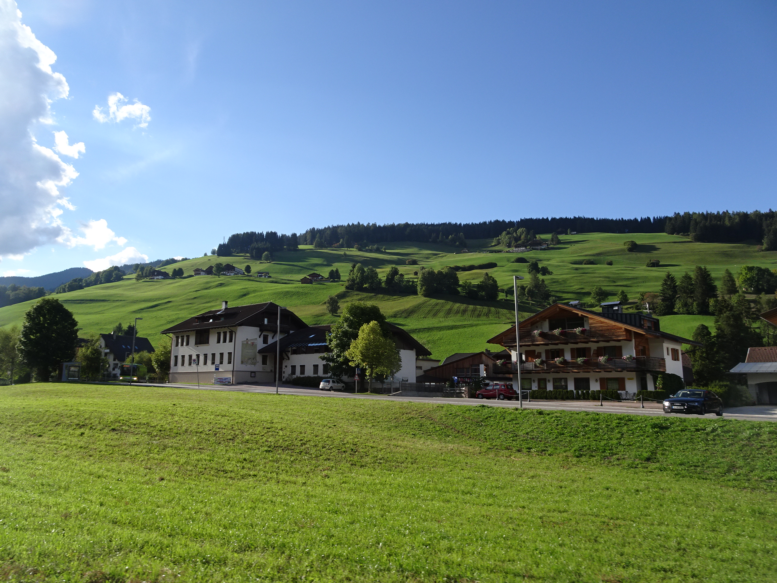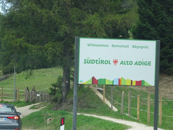 Cum am intrat în regiunea autonomă Sud-Tirol peisajele s-au schimbat. La fel și semnele, toate erau bilingve în austriacă și italiană. Am văzut case extraordinar de frumoase, câmpuri îngrijite și pășuni de un verde aproape orbitor. Chiar ne-am întrebat dacă nu cumva iarba e vopsită de arată așa de bine, dar nu era.