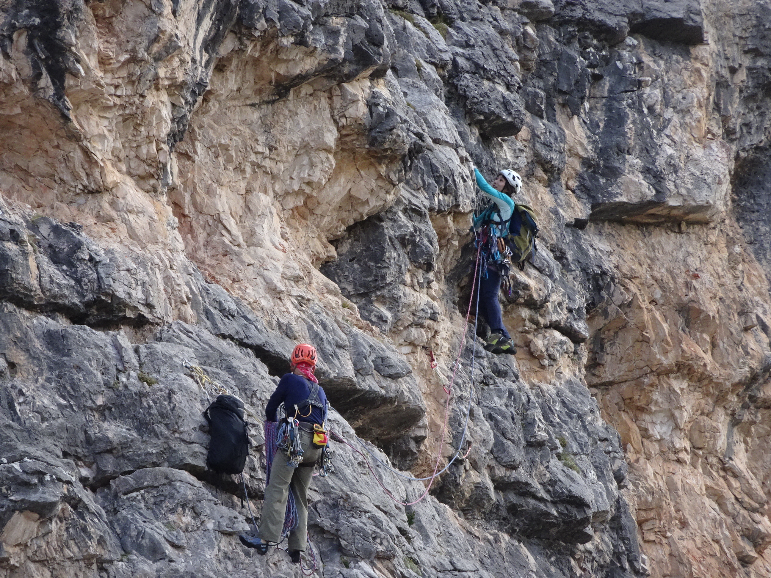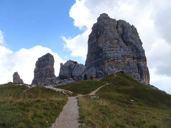 Sus la peste 2300 de metri am făcut o scurtă drumeție până la vârful Cinque Torri. Pe stânci am observat alpiniștii curajoși care încercau escaladarea vârfului.