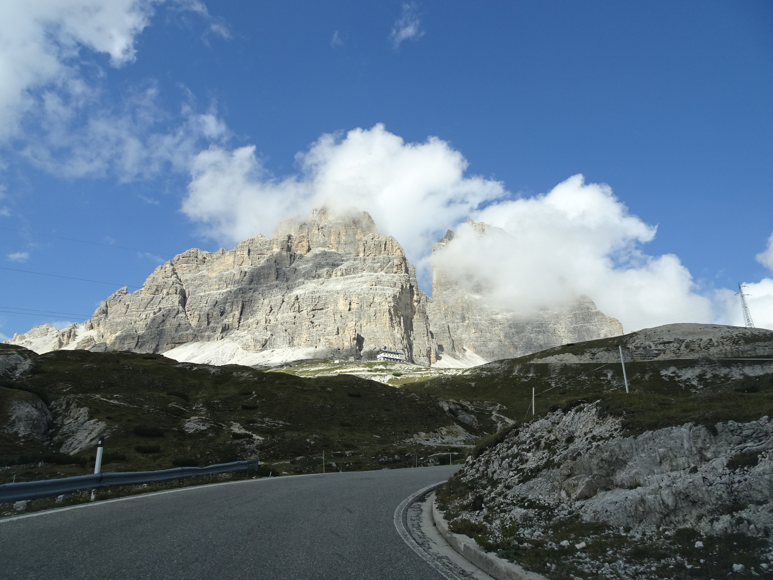 Chiar în acel weekend se ținea la Misurina campionatul mondial de mountain bike astfel că drumul care duce sus în vârf fusese închis în prima parte a zilei. Am ajuns la intrarea în parcul național la fix, chiar când accesul se deschidea autovehiculelor. Accesul în parc este contra cost, taxa fiind de 30 de euro de mașină. Mai departe am parcurs ultimii 5 kilometri până la parcarea de la refugiul Auronzo aflată la 2.333 de metri.