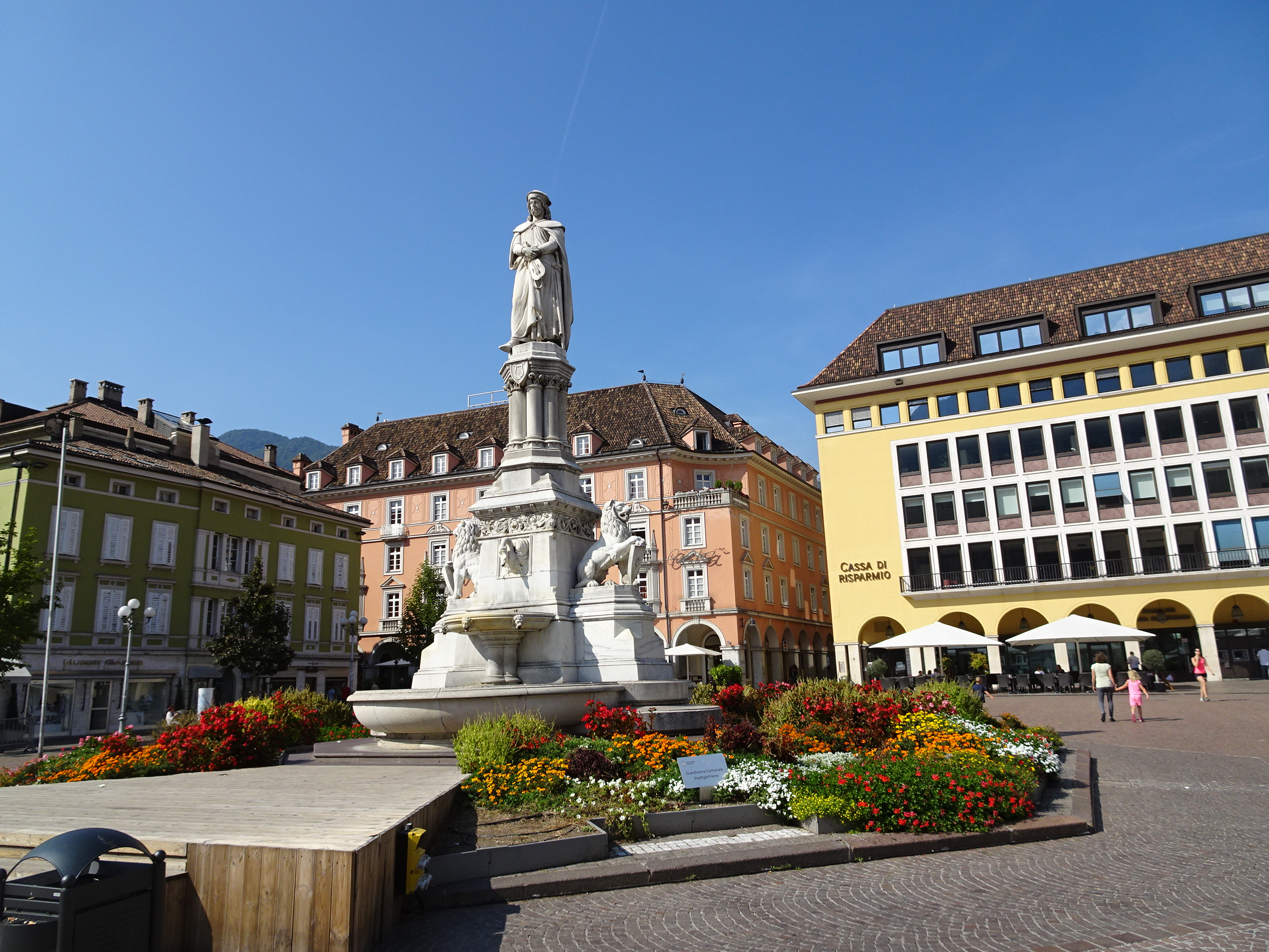 Ultima oprire a zilei a fost Bolzano (Bozen), capitala regiunii autonome Sud-Tirol. Acesta este cel mai „austriac” oraș al Italiei unde toți locuitorii vorbesc germana iar centrul orașului aduce mai degrabă cu Salzburg decât cu un alt oraș italian. După alipirea Tirol-ului de Sud la Italia, Bolzano a fost centrului luptei de eliberare și au avut loc mai multe atentate teroriste împotriva administrației centrale. Atmosfera s-a liniștit abia după anii 90 când Austria a recunoscut granițele actuale formal iar provincia Tirol a primit o autonomie sporită. Astăzi, regiunea este de departe cea mai bogată a Italiei cu un nivel de trai mult superior. La Bolzano am dat o tură scurtă prin centrul vechi. Am văzut catedrala ce aduce cu Biserica Neagră din Brașov iar apoi ne-am așezat la umbră la una din terasele din piața centrală. Dacă sus pe munte era soare dar temperatura n-a trecut de 15-20 de grade, la Bolzano erau peste 30. Înainte de a pleca am oprit pe la un supermarket să luăm niște dulciuri pentru acasă.