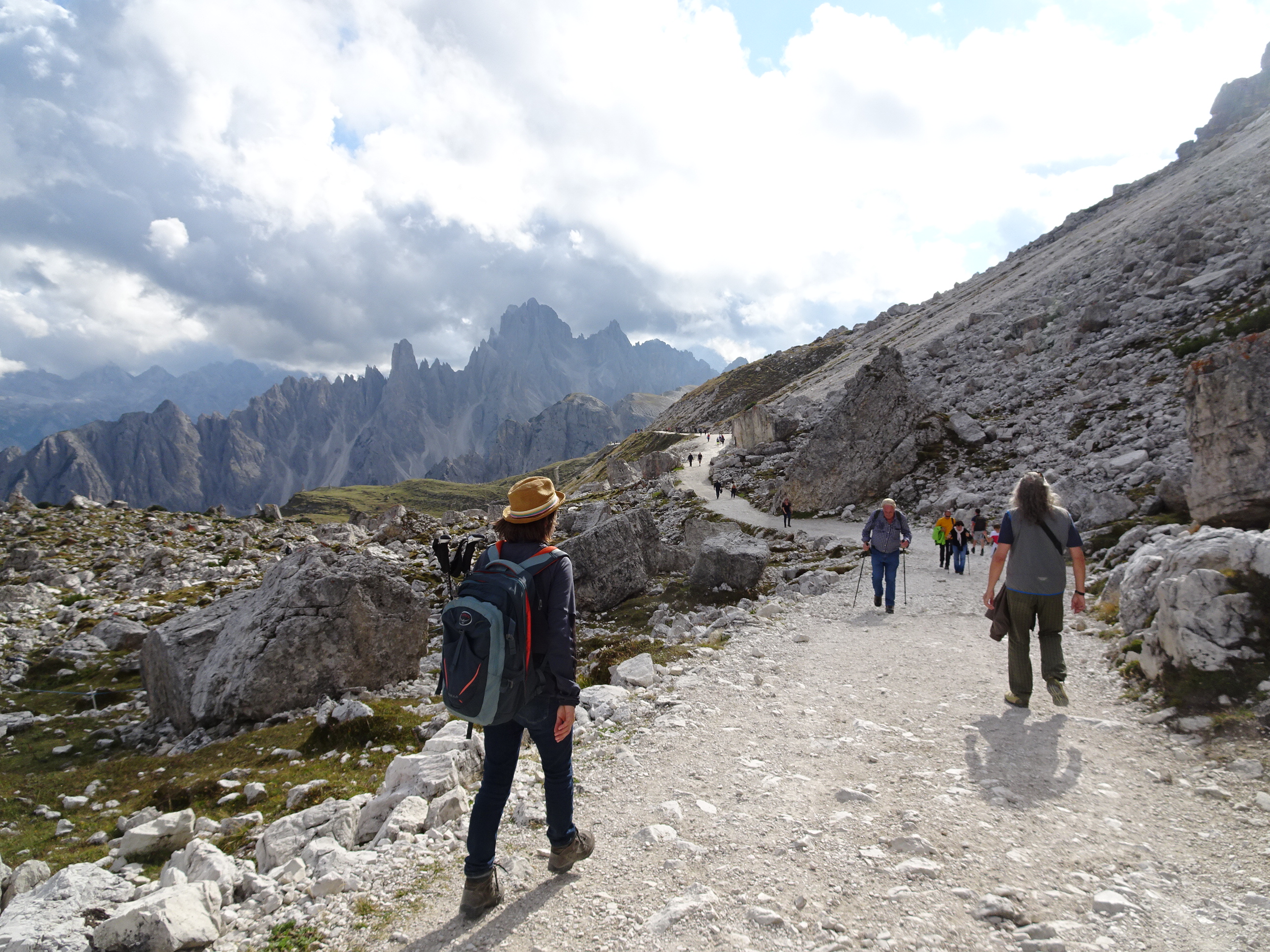 De la parcarea de lângă Rifugio Auronzo încep traseele montane. Există multe variante de trasee, diverse ca lungime și dificultate. Cel mai popular este cel de o oră până la refugiul Lavaredo de unde se vede cea mai frumoasă panoramă spre Tre Cime. Am pornit și noi pe acest traseu destul de ușor pe o potecă amenajată. Peisajele care le-am văzut pe drum ne-au lăsat efectiv cu gura căscată.